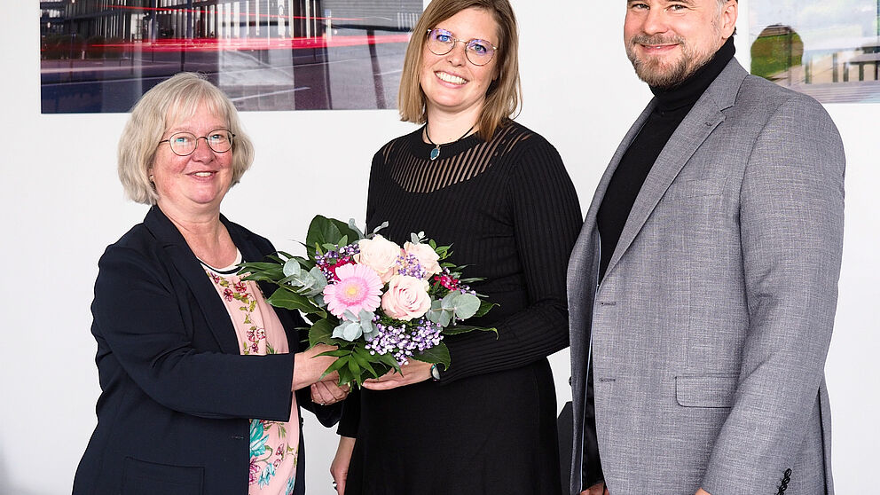 Photo (Paderborn University, Johannes Schnurr): (from left to right) Simone Probst, Vice-President for Finances and Human Resources, Anna Nickel, new Head of the University Library, and University President Prof. Dr. Matthias Bauer.