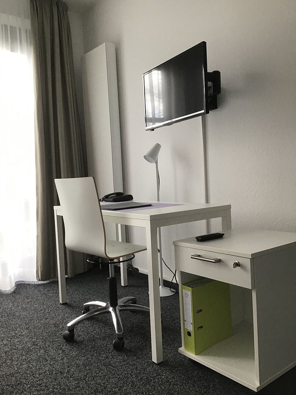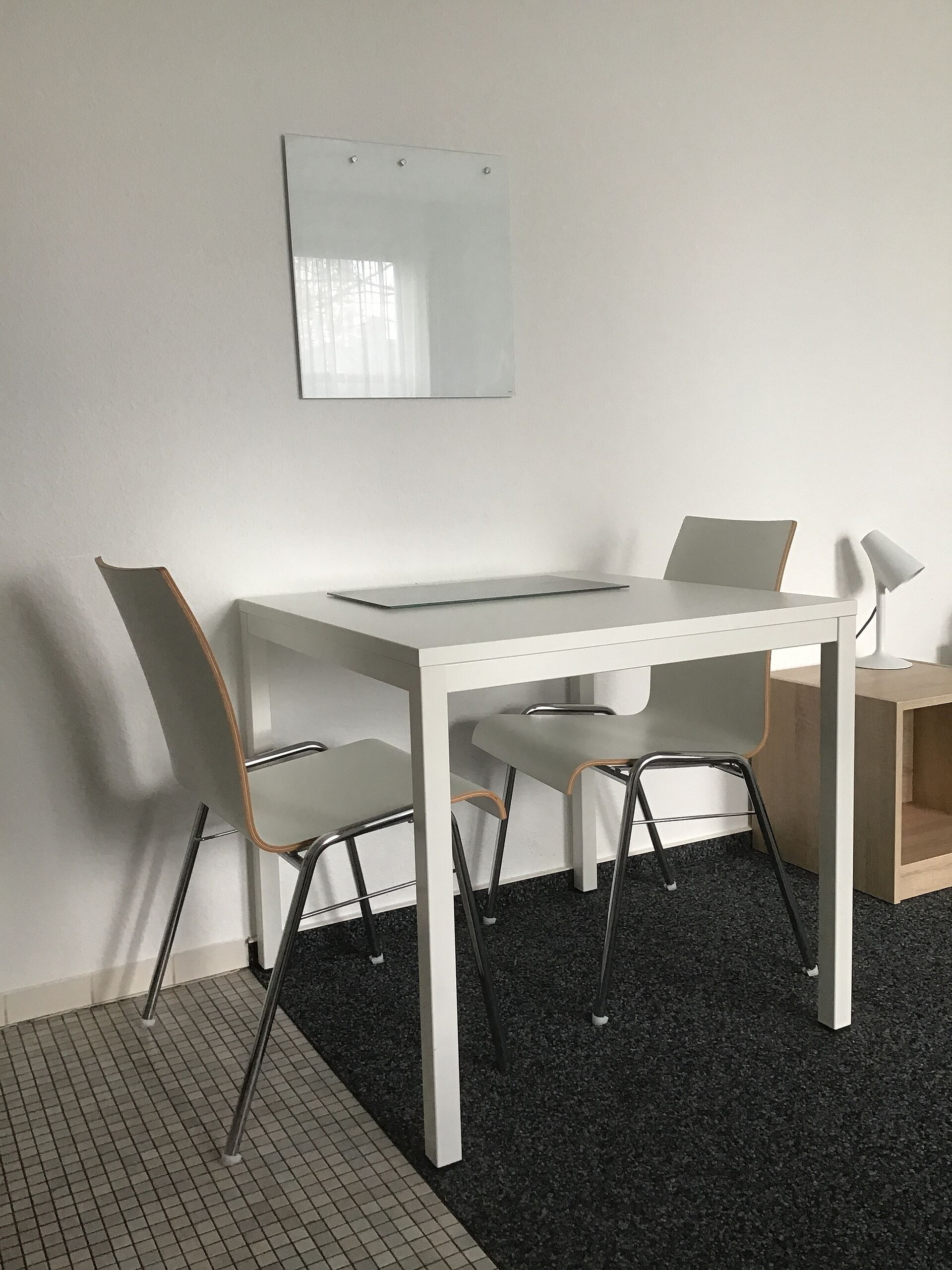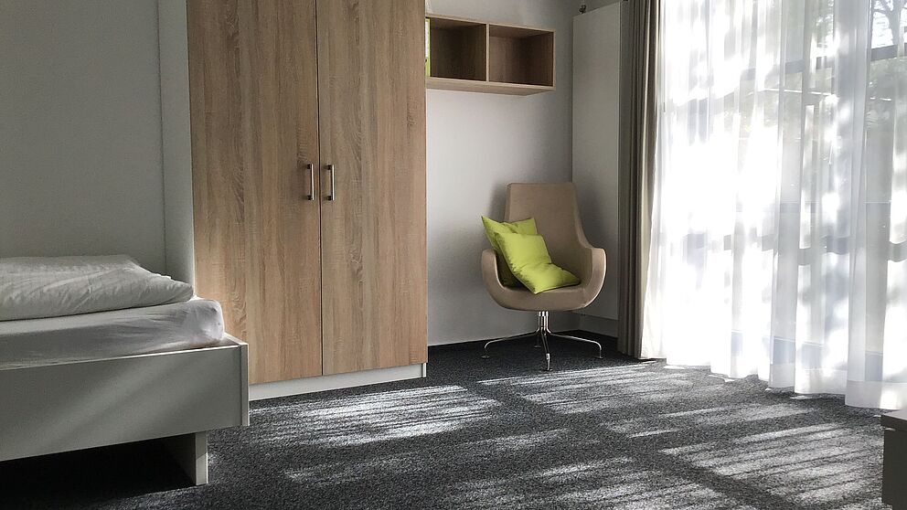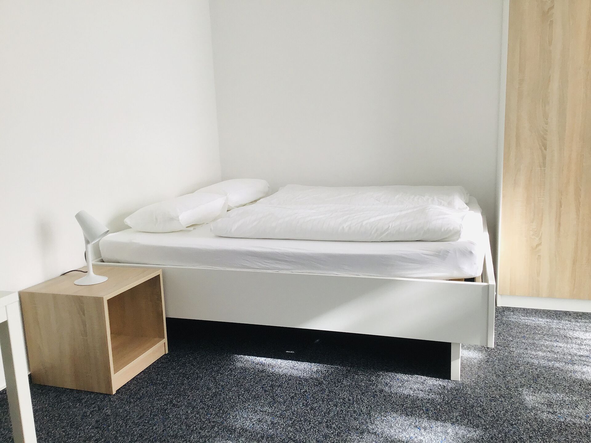 The apartments in the guesthouse are fully furnished and have an integrated kitchenette, a private bathroom with shower/WC, TV, WLAN and telephone (for free calls within the UPB telephone network). The kitchenette is equipped with an induction hob with two cocking plates, microwave, fridge, kettle, cooking utensils, crockery and cutlery. The small apartments (single) have a single bed; the large flats have a double bed (160x200). Please note: Extra beds or mattresses cannot be added.