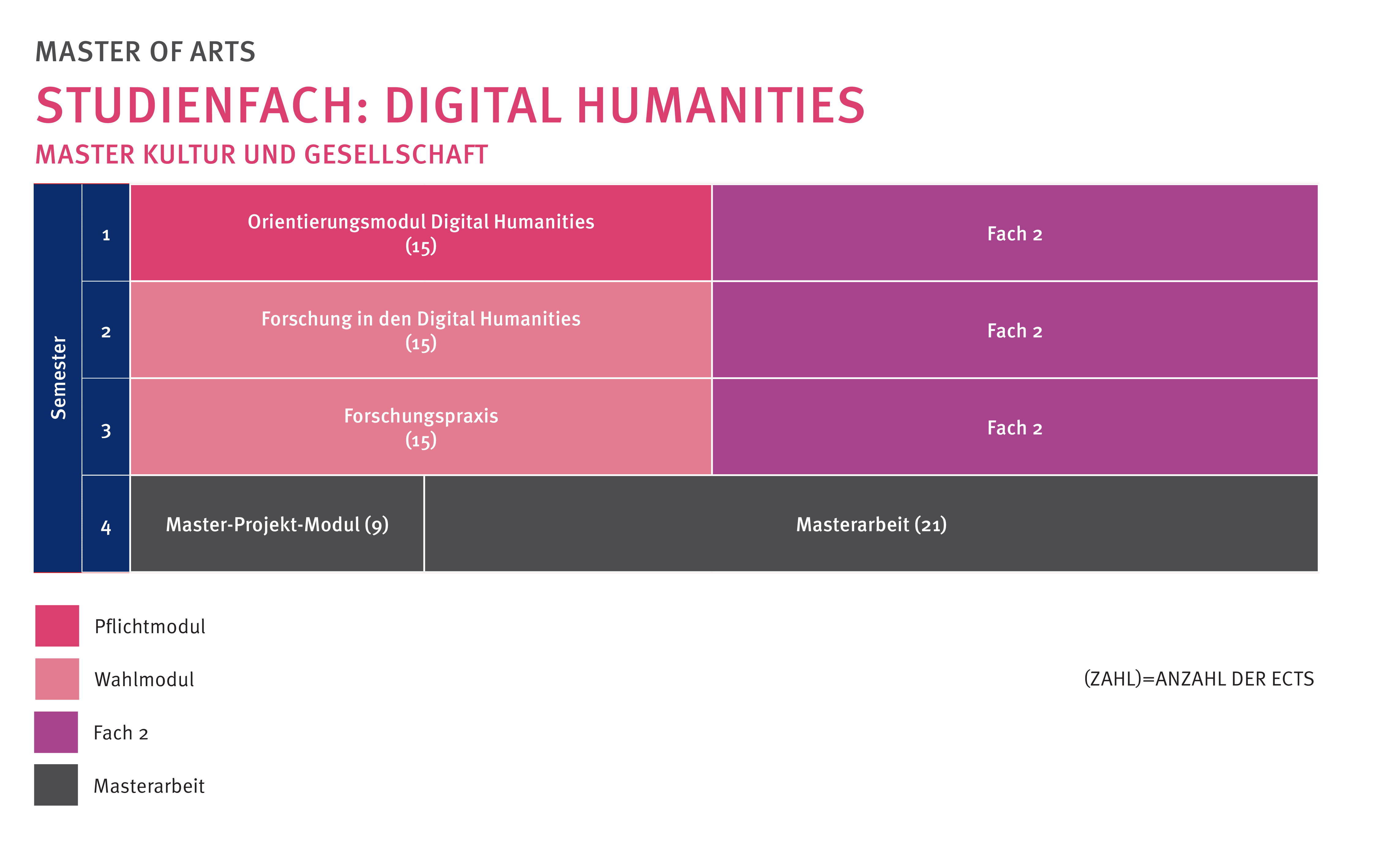 Der Masterstudiengang Kultur und Gesellschaft ermöglicht dir einen interdisziplinären Studienabschluss. Die Doppelqualifikation in den Digital Humanities bietet dir - jenseits der wissenschaftlichen Berufswahl – unter anderem den Einstieg in Medien- oder IT-Unternehmen sowie in Bereiche der Kommunikation und Beratung, in denen es um die Bereitstellung und Aufbereitung von Informationen geht.