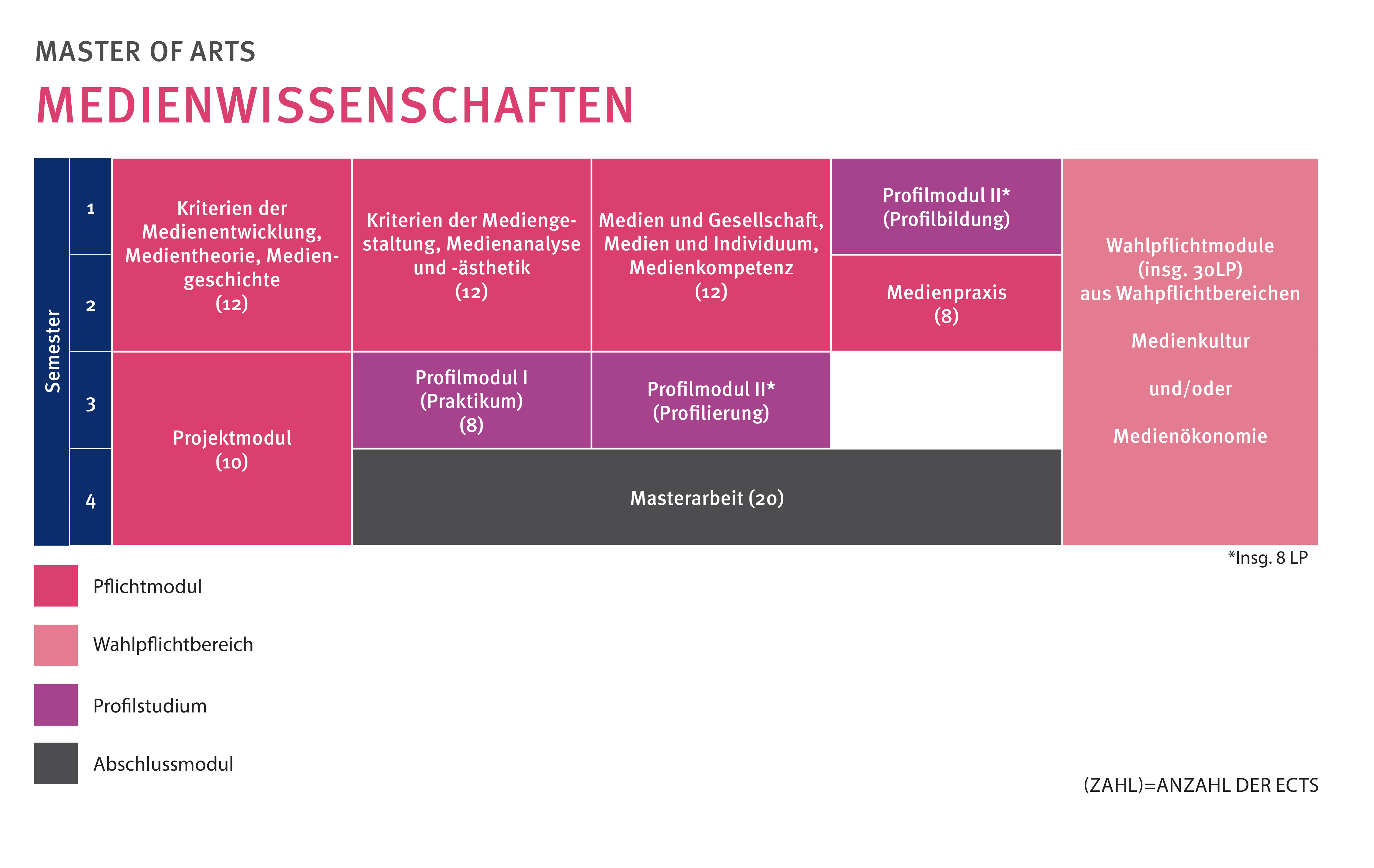 Der Master Medienwissenschaften umfasst einen Wahlpflichtbereich, indem drei Module aus dem folgenden Katalog gewählt werden können: