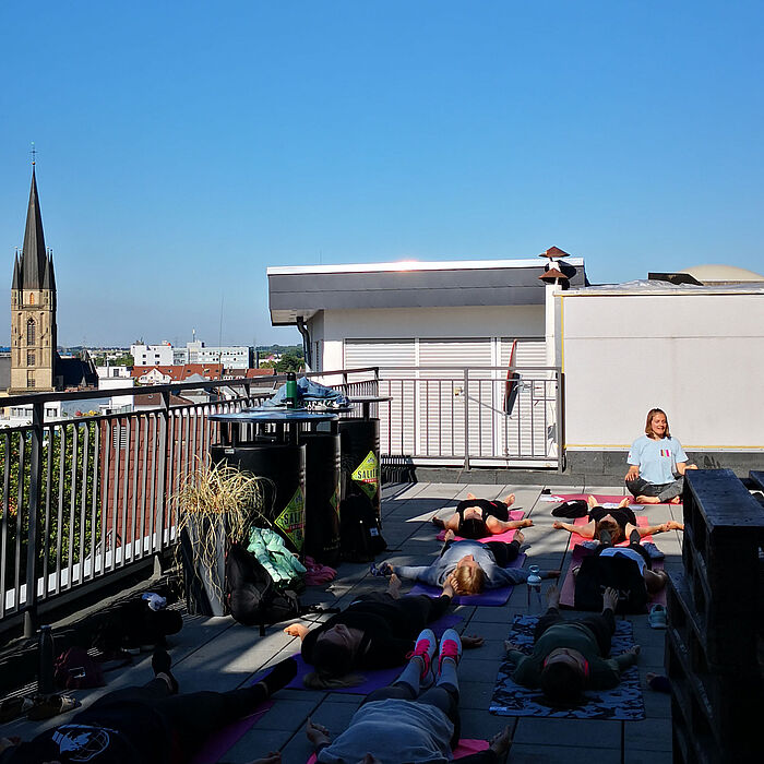 Nachdem das Rooftop-Morning-Yoga von recharge@upb.de letzte Woche so gut bei euch angekommen ist, haben wir zusammen mit unserer Yoga-Lehrerin Julia und dem AStA spontan entschieden, einen vierwöchigen Workshop während der Prüfungszeit anzubieten