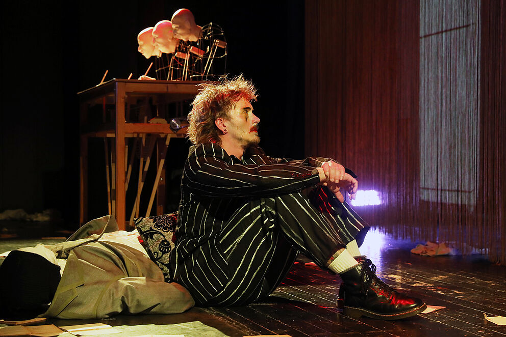 Die Studiobühne widmet sich in Ihrer neuesten Produktion zum 30. Todestag von Heiner Müller seinem berühmtesten Theatertext. Die Inszenierung folgt der Hamlet-Figur in die Zerstörung, untersucht die Emanzipation Ophelias, fragt nach der Rolle des männlichen Intellektuellen. Es entsteht ein intensiver Theaterabend, der in atmosphärischen Bildern die politischen Dimensionen, aber auch die menschliche Tragik der altbekannten Geschichte neu erzählt.