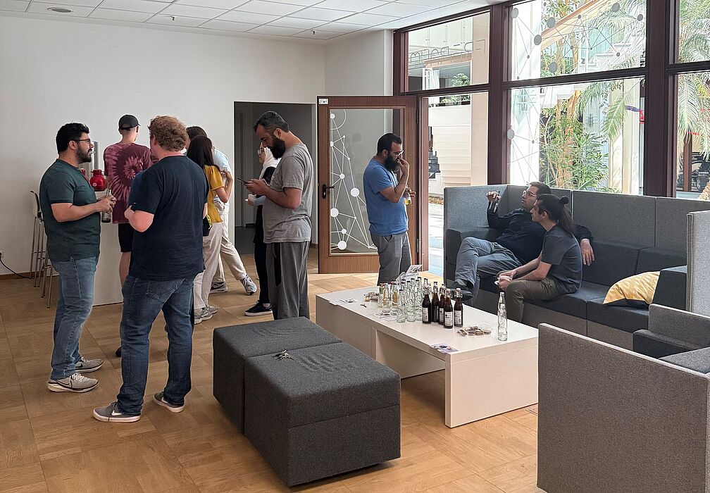 On August 14, 2025, the second “International Coffee Break” took place at the Fürstenallee campus, organised by the Welcome Services for International Researchers and Employees. Despite the hot summer temperatures, chilled drinks and air conditioning provided a welcome refreshment, and of course the traditional cup of coffee was not to be missed. The Coffee Break offered an opportunity for informal exchange among (international) researchers at Fürstenallee and, due to the positive response, will be continued in the coming months.