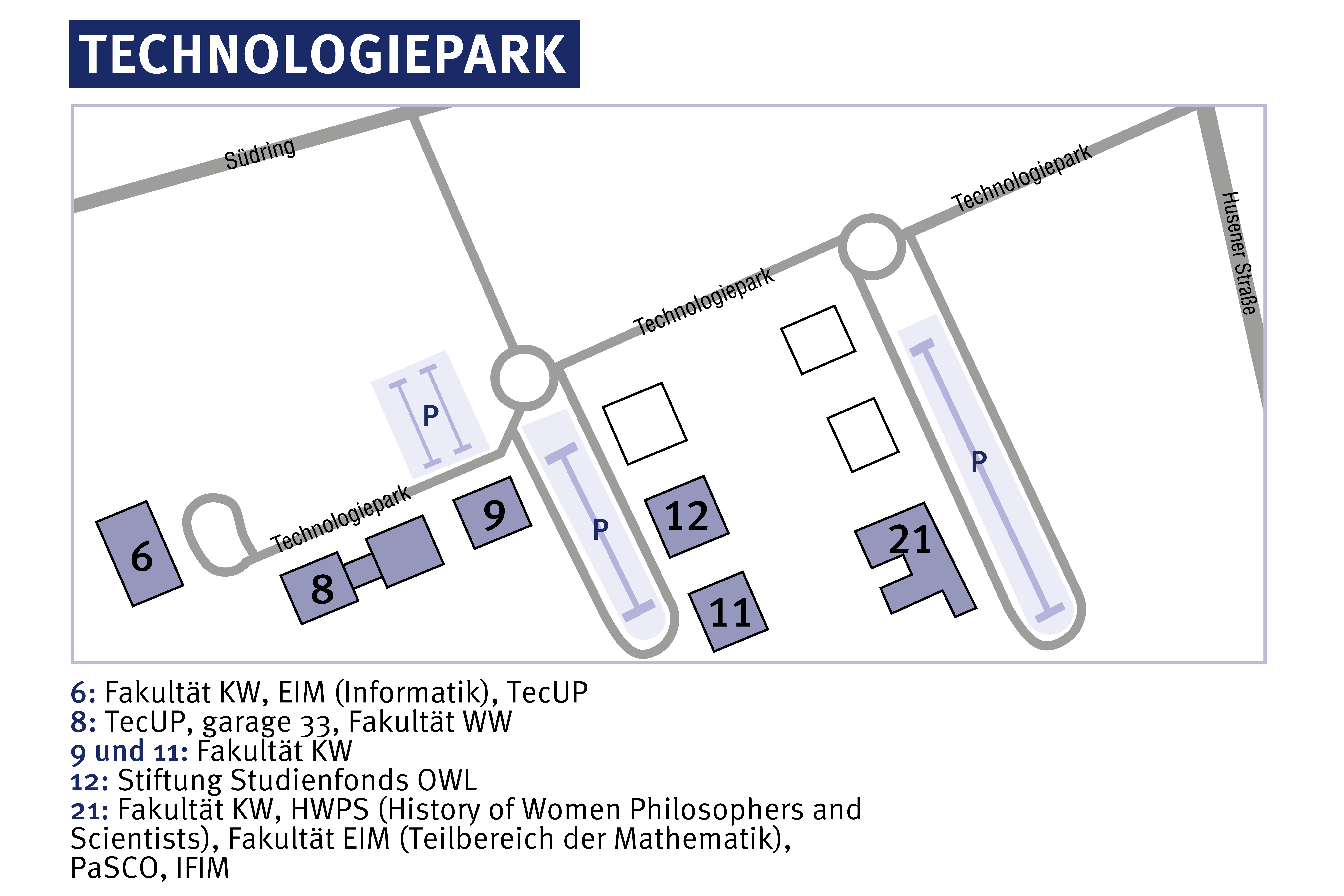 Zur Orientierung auf dem Campus finden Sie hier den Lageplan Campus und hier den Lageplan Technologiepark