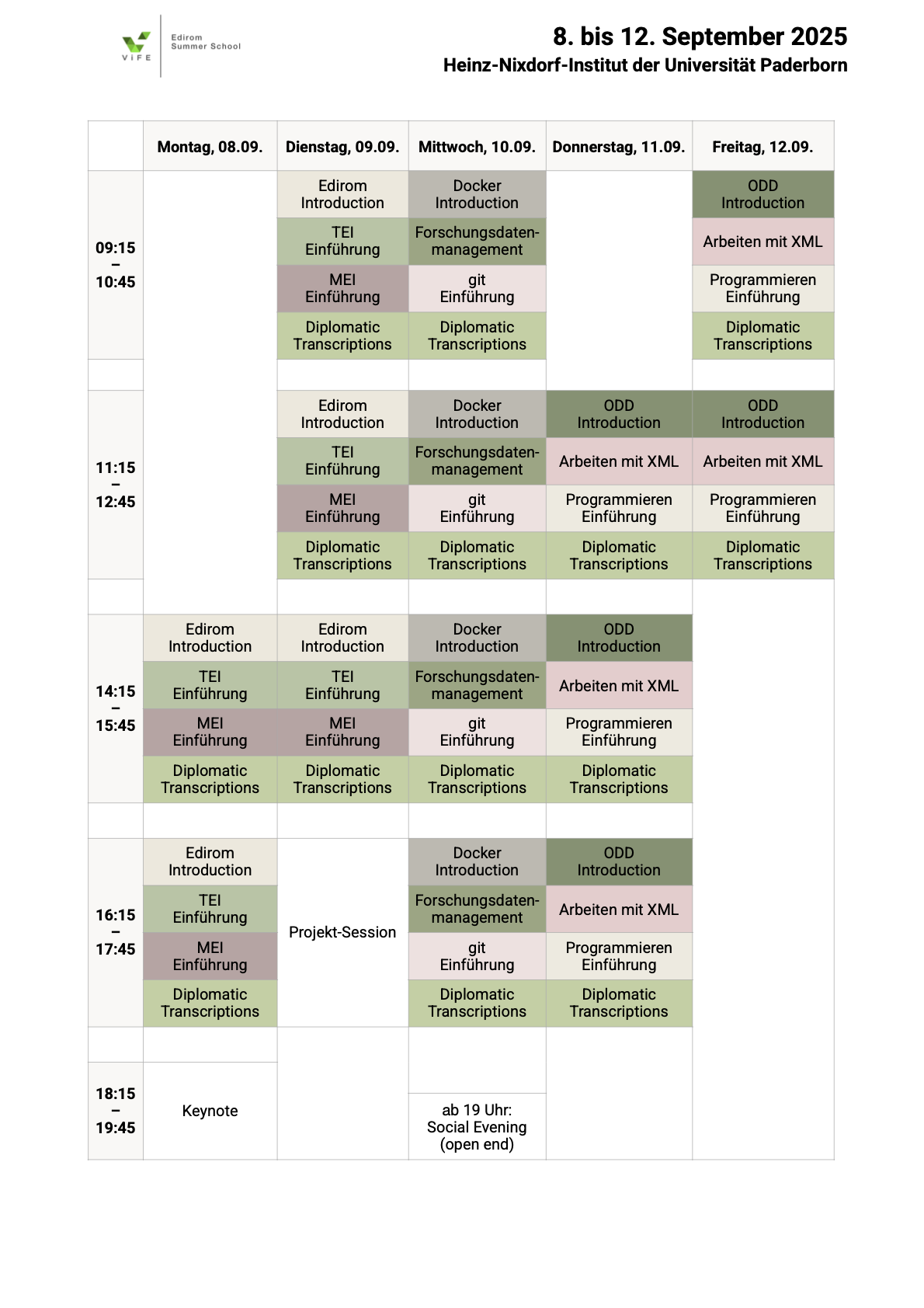 Das Zentrum Musik - Edition - Medien (ZenMEM) und der Virtuelle Forschungsverbund Edirom (ViFE) laden sehr herzlich ein zur diesjährigen 16. Edirom Summer School vom 8. bis 12. September im Heinz-Nixdorf-Institut (Fürstenallee 11, 33102 Paderborn).