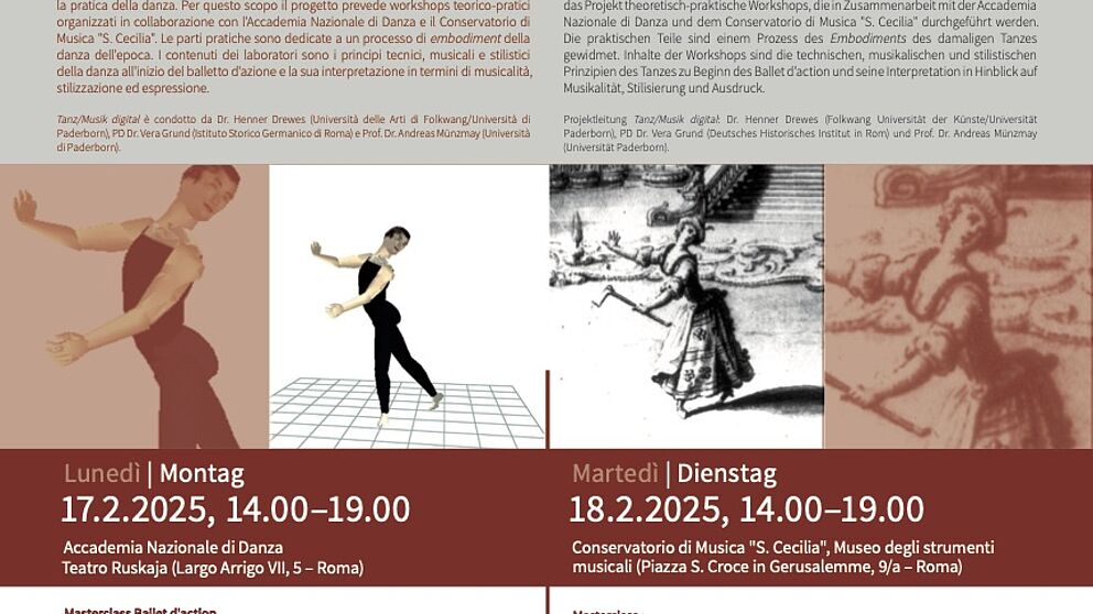 Chair: Prof. Dr. Andreas Münzmay (Universität Paderborn, Zentrum Musik – Edition – Medien), Teilnehmer*innen: Michaela Berti PhD (Conservatorio di Musica “F. Morlacchi”, Perugia – Projekt “PerformArt”), PD Dr. Vera Grund (DHI Rom), Prof. Dr. Federica Rovelli (Università di Pavia/Cremona), Dr. Elisa Novara (DHI Rom – Projekt “Beethovens Werkstatt”)