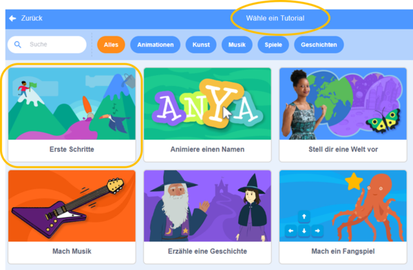 Durch die vielen vorhandenen Vorschläge bietet Scratch die Möglichkeit sich schnell mit dem Programm vertraut zu machen. Es stehen mehrere Tutorials zur Verfügung, in denen unterschiedliche Themen schrittweise und kindgerecht erklärt werden. So steht einer eigenständigen Arbeit mit dem Programm nichts mehr im Wege!