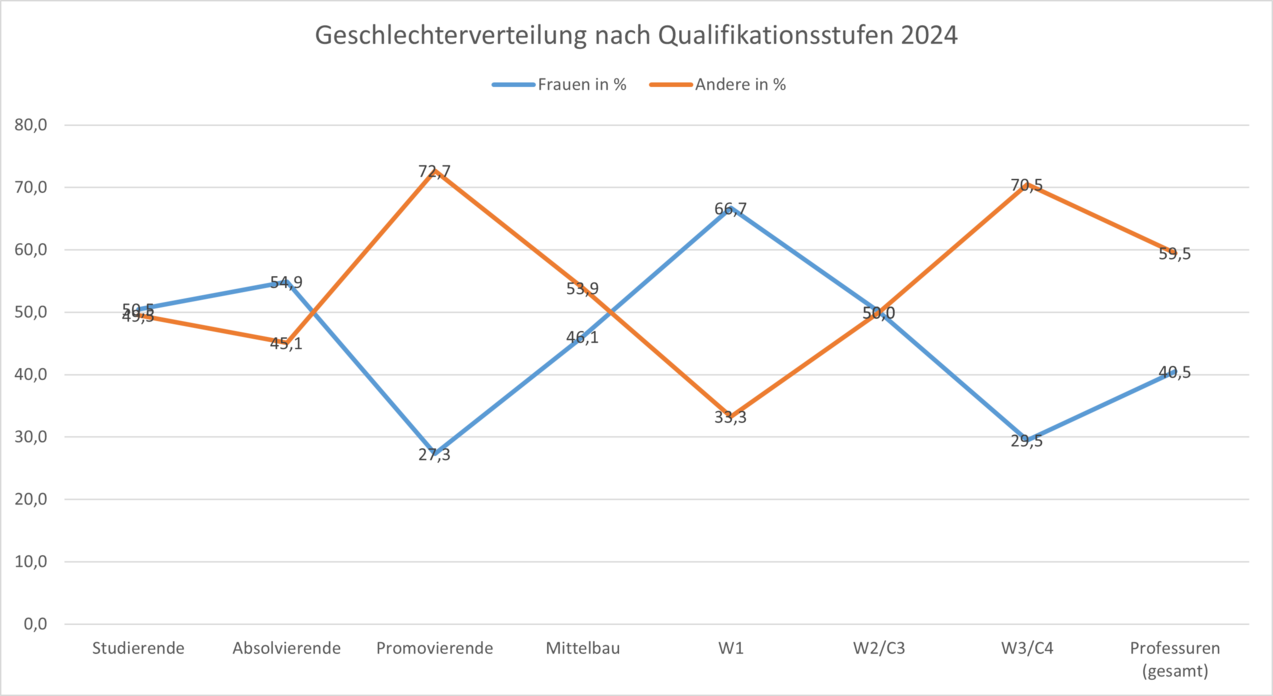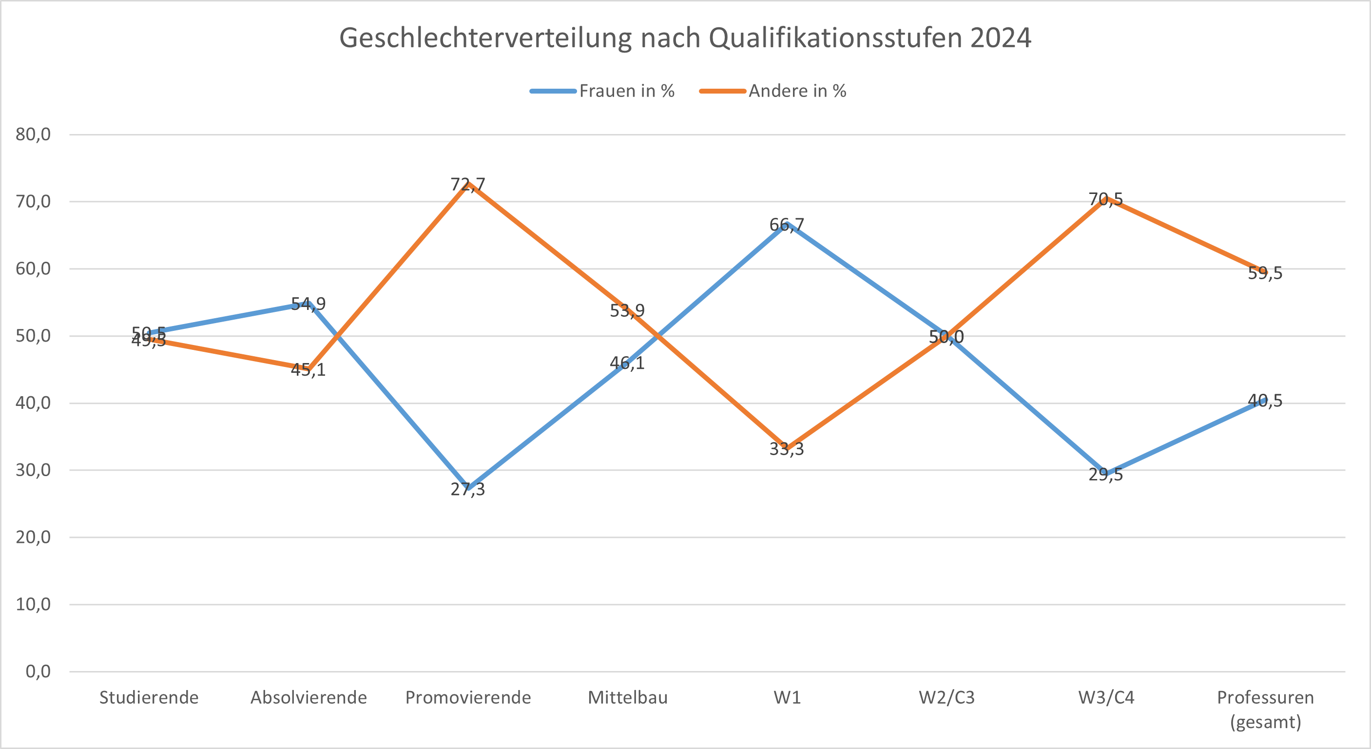 Die Universität Paderborn erhebt regelmäßig geschlechtsdifferenzierte Daten über die Student*innen und Mitarbeiter*innen. Diese geschlechtsspezifischen Statistiken bilden die Grundlage für die Analyse der Situation von Frauen im Wissenschaftsbereich und beschreiben die Entwicklung der Frauenanteile an den verschiedenen wissenschaftlichen Qualifikationsstufen der Universität Paderborn. Die Statistiken zeigen Handlungsbedarfe auf und bilden die Grundlage für die Entwicklung von Maßnahmen zur Gleichstellung von Frauen und Männern.