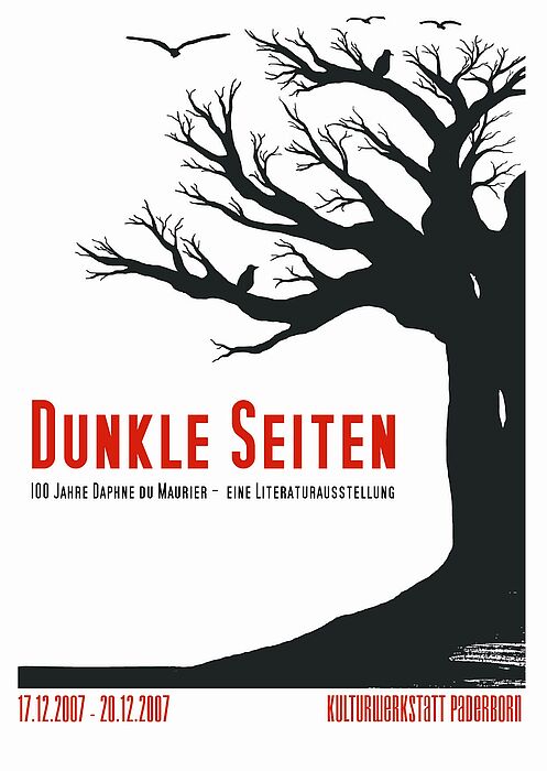 Gedruckte Seiten könne man halten, riechen, bestreichen, zwischen ihren Zeilen eintauchen, und doch verharre man zwischen Gedanken und Erscheinung, so Studierende der Fakultät für Kulturwissenschaften der Universität Paderborn. Anlässlich des 100. Geburtstages der britischen Schriftstellerin Daphne du Maurier veranstalten sie unter der wissenschaftlichen Leitung von Frau Dr. Claudia Lillge eine Retrospektive. Unter dem Motto „’Dunkle Seiten’ – 100 Jahre Daphne du Maurier, eine Literaturausstellung“ werden die bekannten und unbekannten imaginären Welten der Autorin vom 17. bis 20.12.2007 in der Kulturwerkstatt Paderborn erfahrbar gemacht.