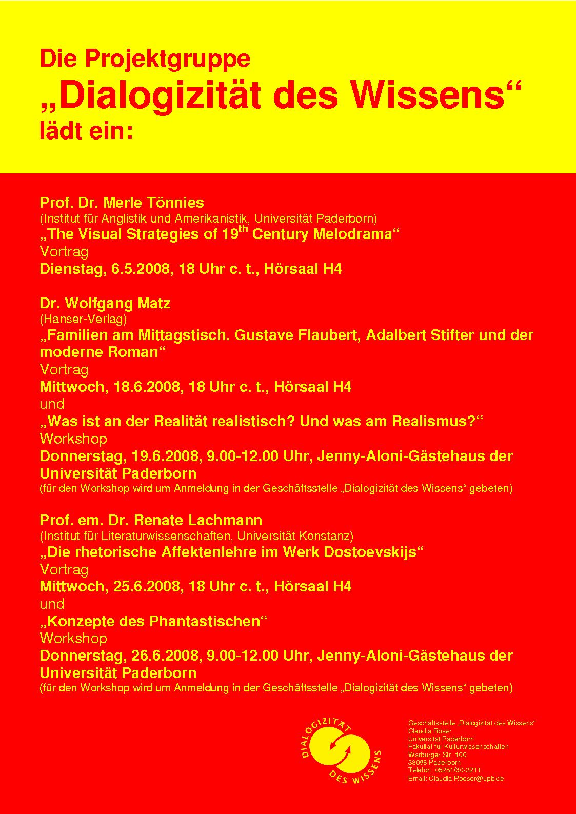 Vor­trag "Me­di­en­di­a­lo­ge im bri­ti­schen Me­lo­dra­ma des 19. Jahr­hun­derts" von Prof. Dr. Mer­le Tön­nies am Diens­tag, 6. 5. 2008, 18.15 Uhr, Hör­saal H4
