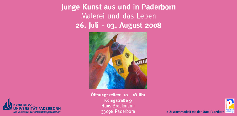 Im ehemaligen traditionsreichen Geschäftshaus Brockmann wird zu Libori am Samstag, 26. Juli, 12 Uhr, mit Unterstützung der Stadt Paderborn eine Ausstellung mit junger Kunst aus Paderborn eröffnet. Studierende des Instituts für Kunst, Musik, Textil der Universität Paderborn zeigen eine aufregende und inspirierende Fülle aktueller Positionen in der Malerei.