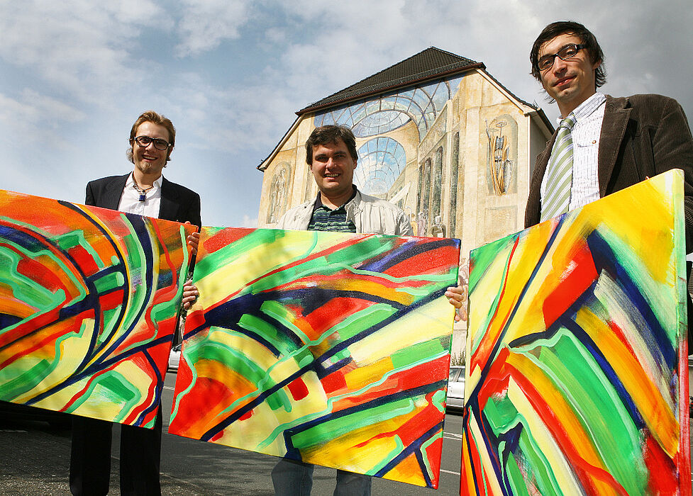 Im Rahmen des diesjährigen Uni-Sommerfestes entstand live ein Gemälde des Paderborner Künstlers Bernward Schäfers. In Zusammenarbeit mit dem Universitäts-Projekt „Radical Audio Pool“ ließ sich der Künstler durch eigene Musik und die Impressionen der Veranstaltung zu dem Gemälde „Farbfestival“ inspirieren.