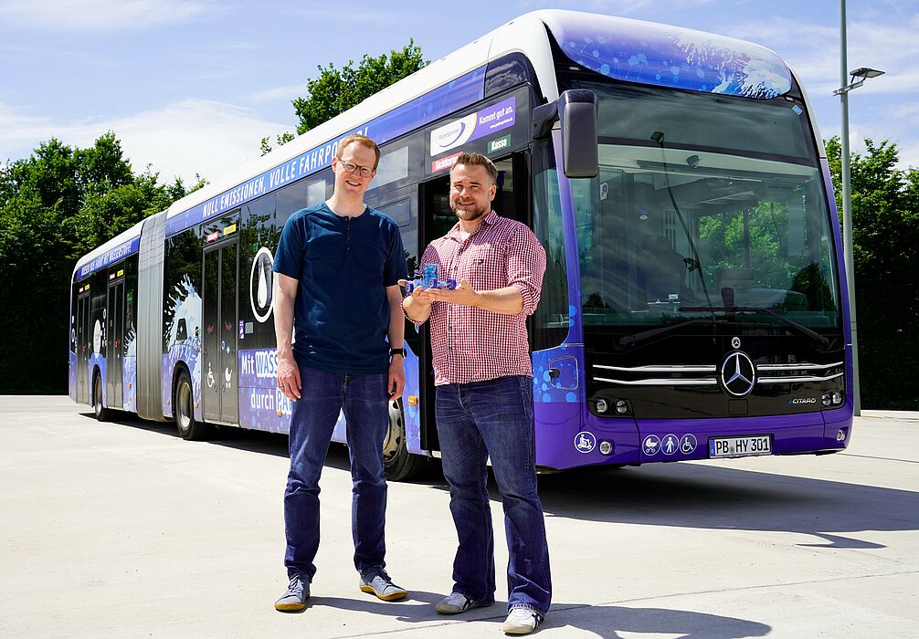 Am Freitag, 21. Juni, nehmen Wissenschaftler der Universität Paderborn alle Interessierten mit auf eine spannende und kurzweilige Reise in die Welt des Wasserstoffs. Von 16 bis 18 Uhr führen sie zusammen mit dem Publikum Experimente rund um den Energieträger durch. Das Besondere: Die Experimente finden ebenso wie kurze Vorträge im eCITARO fuel cell statt, den der PaderSprinter auf dem Rathausplatz parkt. Den Elektrobus mit Reichweitenverlängerung durch Wasserstoffbrennstoffzellen lieferte Mercedes-Benz als weltweit ersten seiner Art nach Paderborn aus. Die Plätze sind begrenzt, Anmeldungen sind per E-Mail an gabriele.lang@zv.uni-paderborn.de möglich.