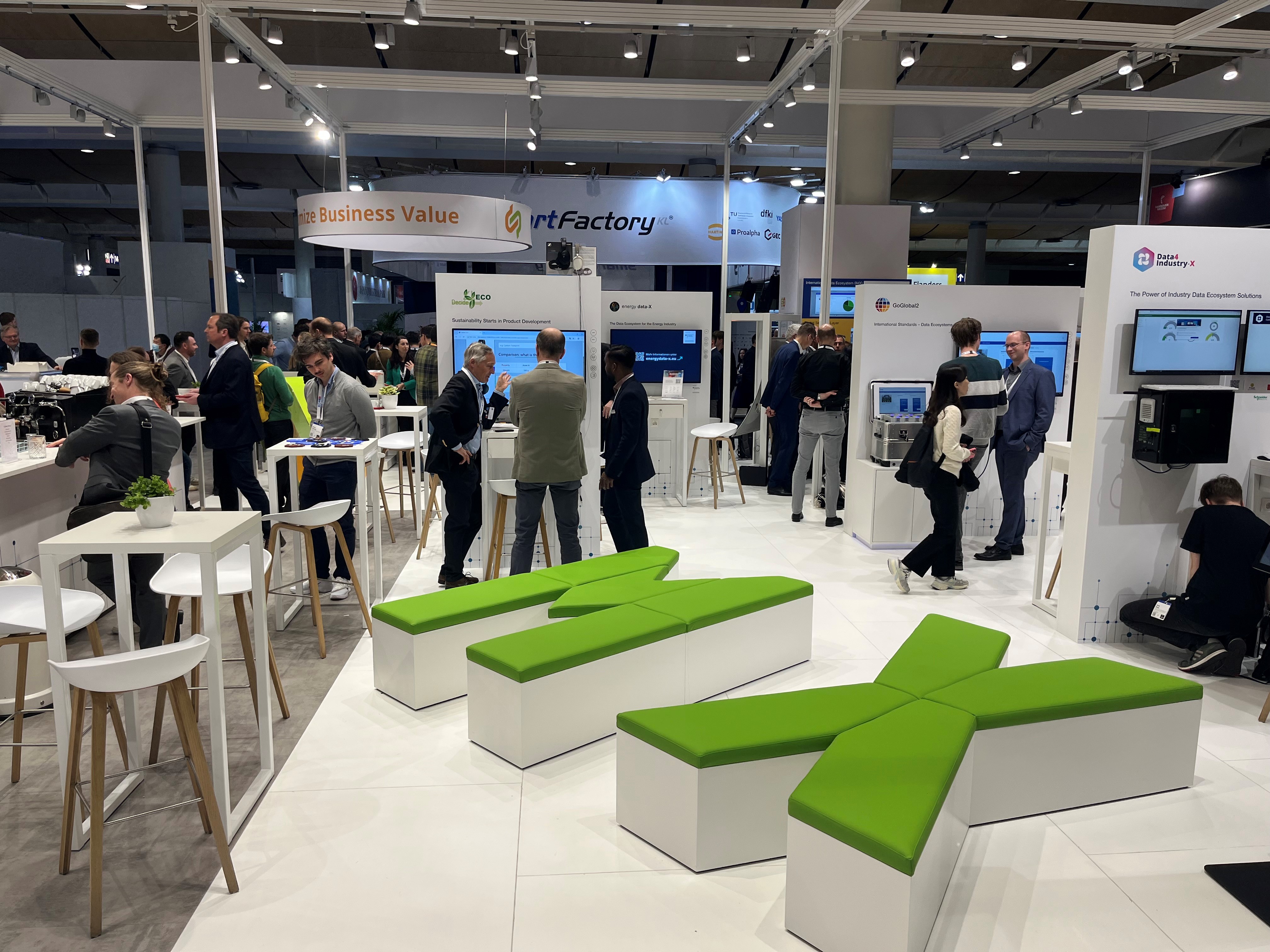 Der Gemeinschaftsstand der Plattform Industrie 4.0 zeigt, wie umfassend die neue Ära bereits von Industrie und Wissenschaft gestaltet wird – von essenziellen technischen Grundlagen bis zu interaktiven Exponaten. Dabei gibt es drei Schwerpunkte: die Initiative „Manufacturing-X“, die „8ra Initiative“ sowie der Themenbereich „Mobilität 4.0“.