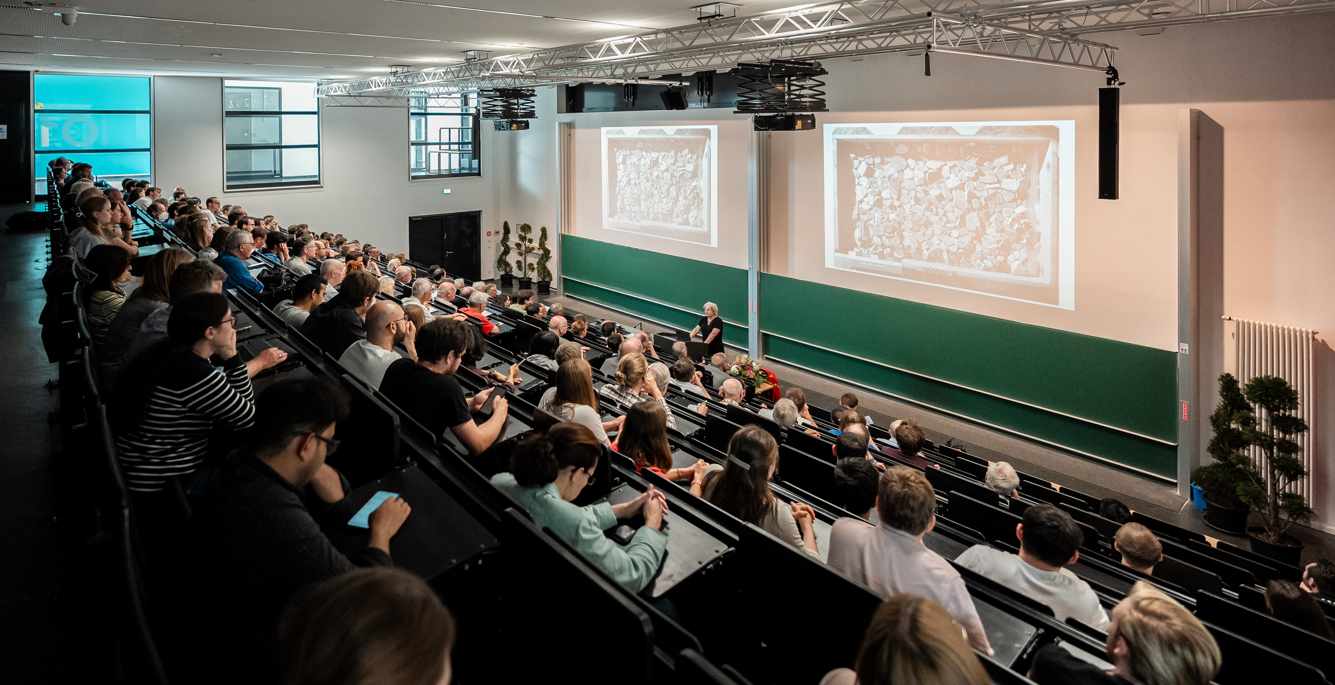Prof. Dr. Martin Kolb, Professor für Stochastik an der Universität Paderborn und Mitorganisator der Vorlesung, führte in den Festvortrag ein. Er lobte die Festrednerin als „herausragende Mathematikerin mit fundamentalen Beiträgen für die angewandte Mathematik“, die nicht nur einen großen Einfluss auf die Mathematik, sondern auch auf andere wissenschaftliche Disziplinen habe. Prof. Daubechies ist vor allem für ihre Wavelet-Forschung bekannt, die die moderne Signal- und Bildverarbeitung grundlegend verändert hat. Dafür erhielt sie zahlreiche Auszeichnungen, wie in diesem Jahr die National Medal of Science der USA. In ihrem Weierstraß-Vortrag führte Prof. Daubechies aus, wie zerstörte Kunstwerke wieder zusammengesetzt werden können. So können fehlende Elemente durch ihre wissenschaftlichen Berechnungen mit minimaler Variation genaustens bestimmt werden.