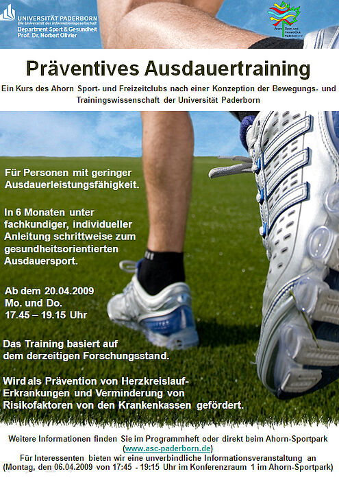 Die Bewegungs- und Trainingswissenschaft des Departments Sport und Gesundheit der Universität Paderborn erstellte im Rahmen der Kooperation mit dem Ahorn-Sportpark ein neuartiges Konzept für ein präventives Ausdauertraining. Die Ziele des Trainings betreffen präventive Effekte bzgl. des Herz-Kreislauf-Systems und die Reduzierung von Risikofaktoren für Herz-Kreislauf-Erkrankungen (u. a. Bewegungsmangel, Übergewicht, Bluthochdruck).