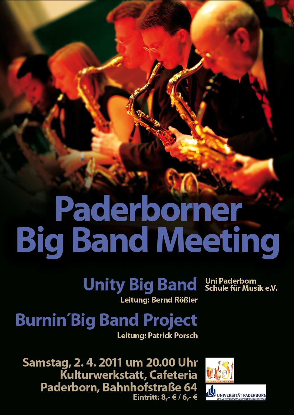 Es wird ein interessanter Konzertabend für Freunde des Big Band Jazz am Samstag, 2.4. um 20.00 Uhr in der Cafeteria der Kulturwerkstatt, Bahnhofstr. 64 in Paderborn. Der Eintritt beträgt 8,- € / 6,- € (ermäßigt).