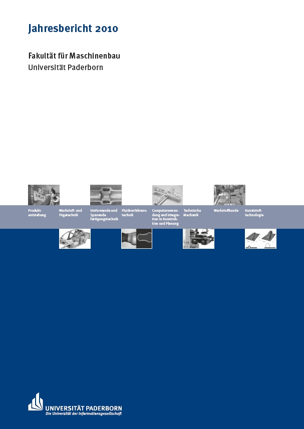 Die Fakultät für Maschinenbau der Universität Paderborn informiert mit ihrem jetzt veröffentlichten Jahresbericht über ihr Profil, die Aktivitäten, Ereignisse und Auszeichnungen des vergangenen akademischen Jahres. So wurde der Fakultät in 2010 bereits nach einem Jahr Mitgliedschaft das Gütesiegel des Fakultätentages für Maschinenbau und Verfahrenstechnik (FTMV) verliehen. Diese Zertifizierung unterliegt harten Auswahlkriterien in den Kategorien Forschung, Lehre und Organisation.