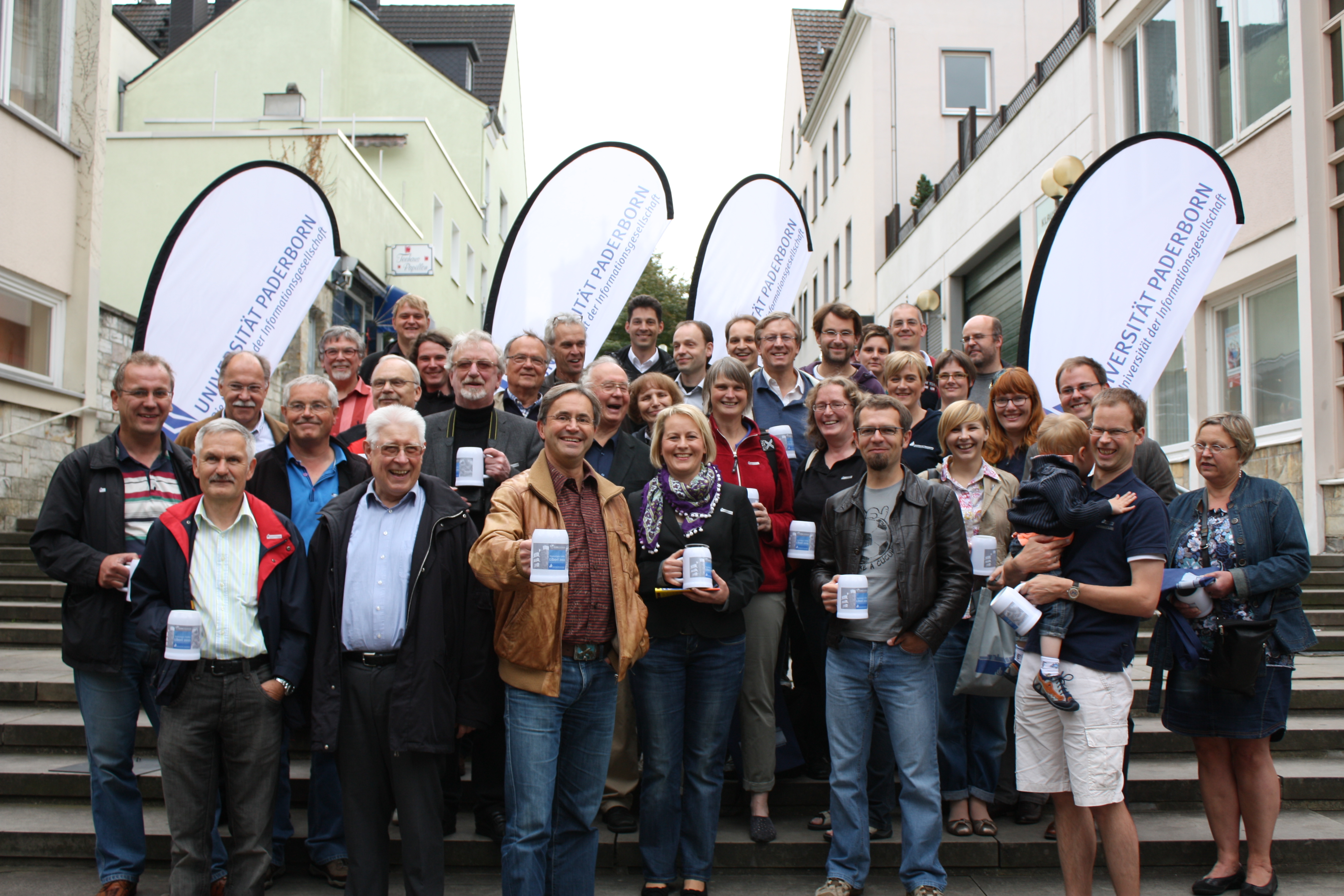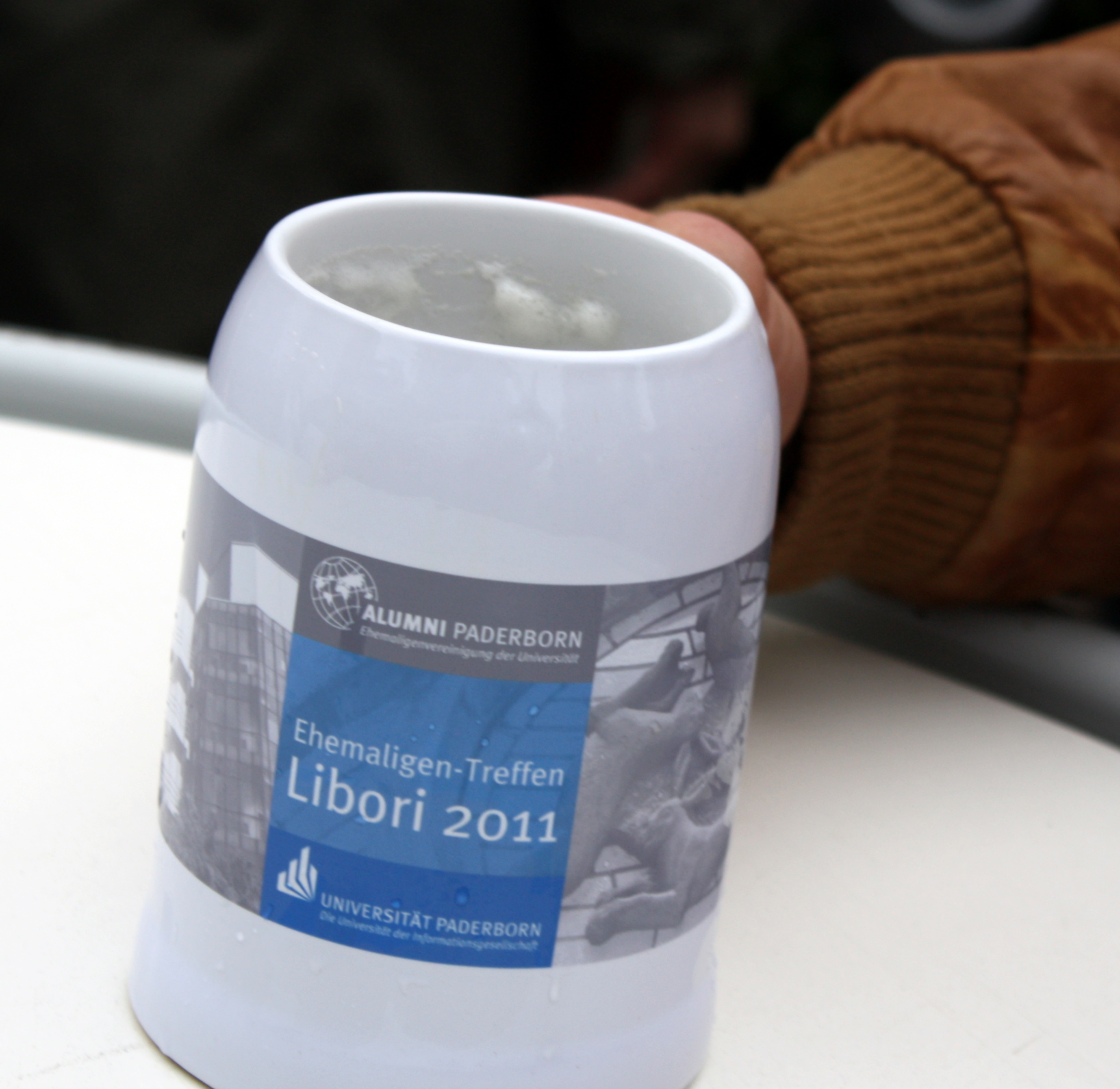Viele der Teilnehmer brachten ihre alten Studienausweise mit und kamen darüber bei einem gemütlichen Bier aus dem eigens angefertigten Alumni-Bierkrug schnell ins Gespräch. In lockerer Runde plauderte man über die Studienzeiten an der Uni und tauschte Erinnerungen aus. Anschließend ging es dann weiter zu einem Bummel über Libori. Das Volksfest ist noch heute ein beliebter Treffpunkt für die Ehemaligen der Uni und sie kommen eigens für die Veranstaltung wieder gerne nach Paderborn.
