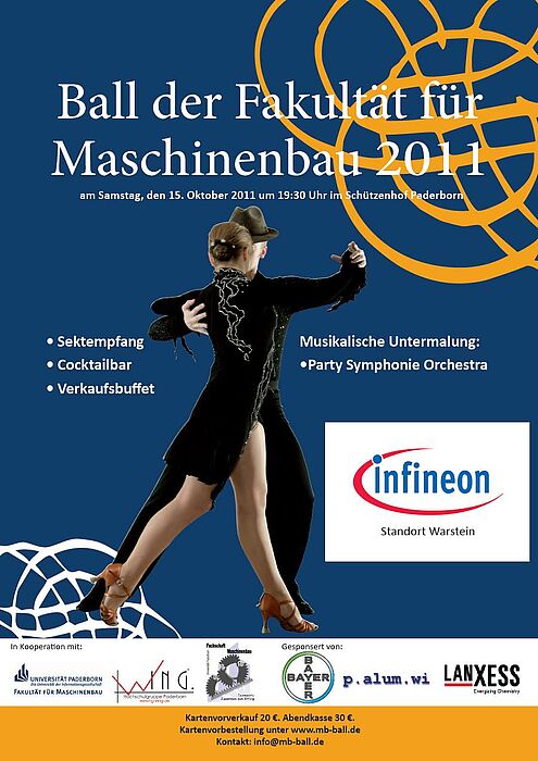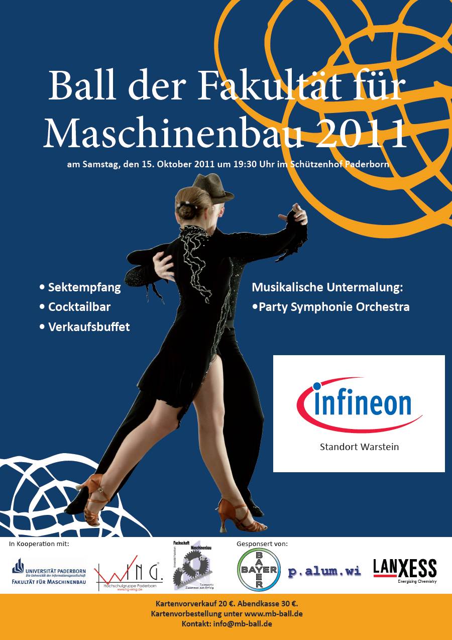 Um 19.30 Uhr beginnt der Ball der Fakultät im Schützenhof Paderborn. Der Ball ist eine Veranstaltung der Fakultät für Maschinenbau und wird in Kooperation mit dem Ehemaligenverein der Wirtschaftsingenieurinnen und Ingenieure (p.alum.wi), der Fachschaft Maschinenbau sowie der Hochschulgruppe Wirtschaftsingenieurwesen organisiert. Der Ball ermöglicht allen Beteiligten, alte Kontakte zu pflegen und neue zu knüpfen.