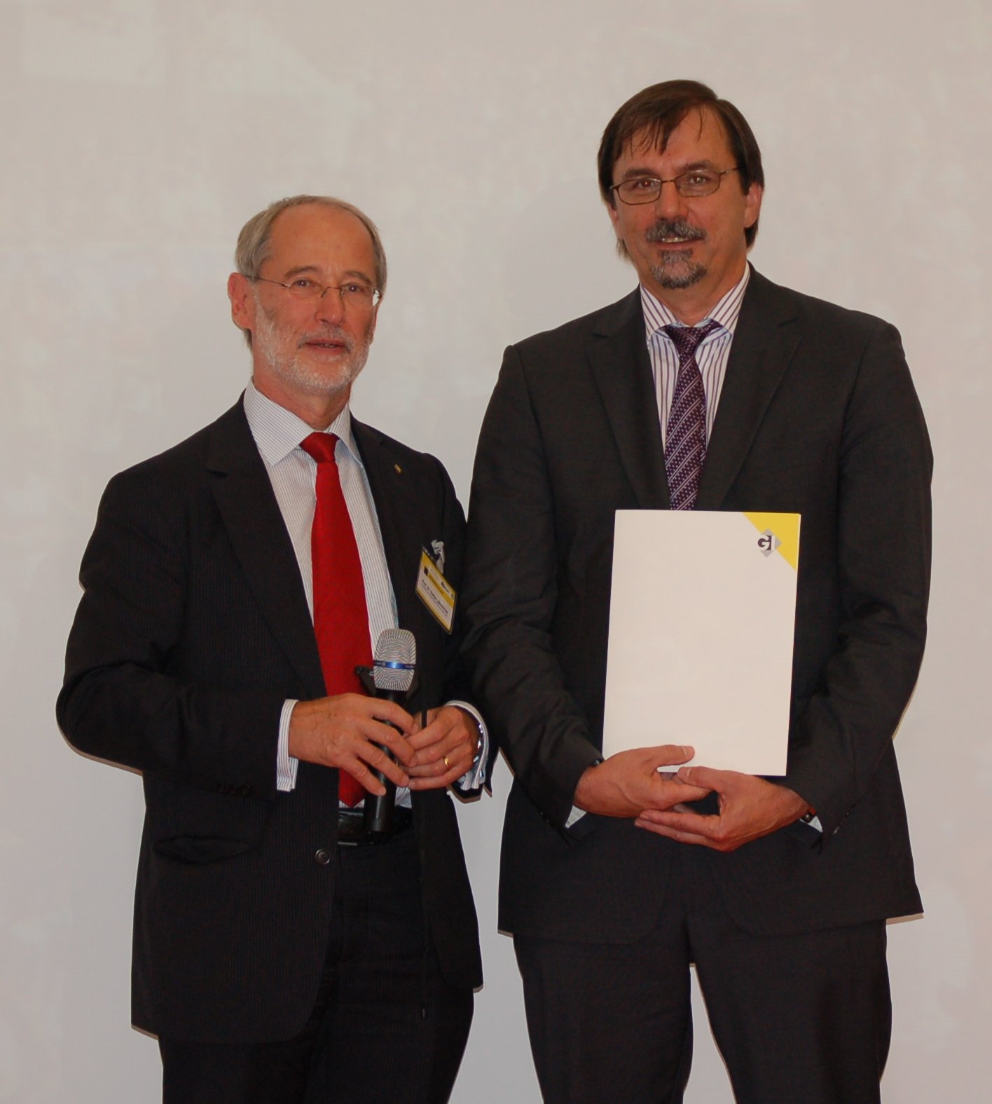 Prof. Dr. Gregor Engels (r.) wurde für seine besonderen Leistungen im Bereich Informatik zum GI-Fellow ernannt. Die Urkunde überreichte der Präsident der Gesellschaft für Informatik, Prof. Dr. Stefan Jähnichen.