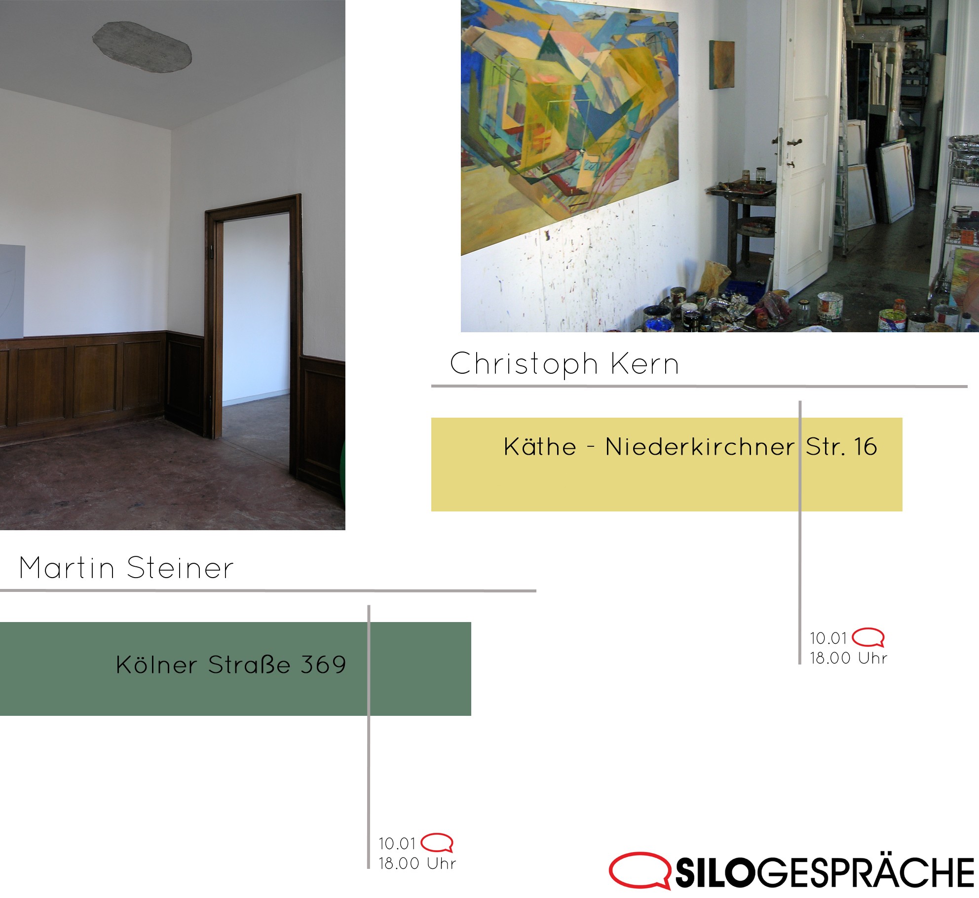 Die Reihe der Silogespräche mit Künstlerinnen und Künstlern wird fortgesetzt am Dienstag, 10.1.2012, mit Christoph Kern (Berlin) und Martin Steiner (Düsseldorf).