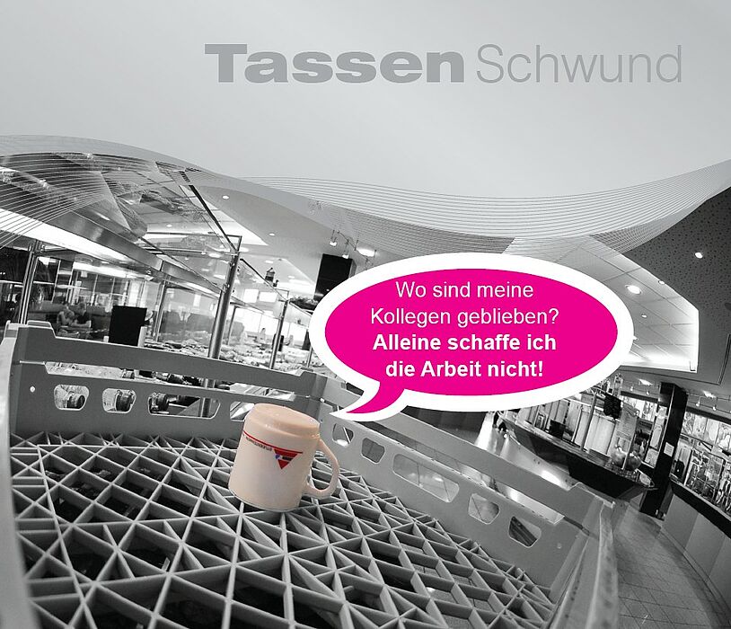 Deshalb an alle Gäste eine Bitte: Achten Sie darauf, ob auch in Ihrem Büro / Ihrer Teeküche oder an anderen Stellen Tassen des Studentenwerks angekommen sind. Bitte holen Sie diese aus den Schränken und bringen Sie sie zu uns zurück.