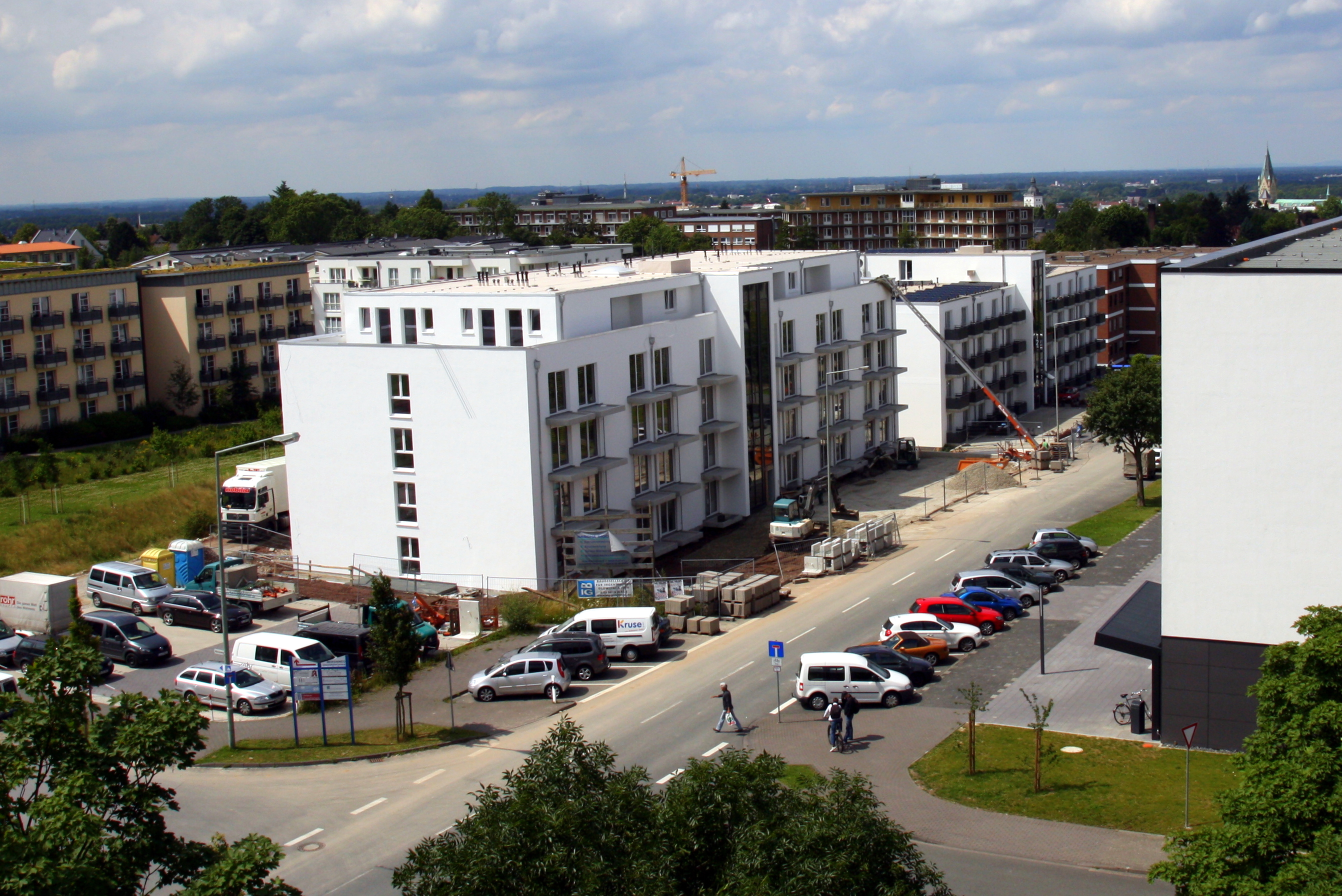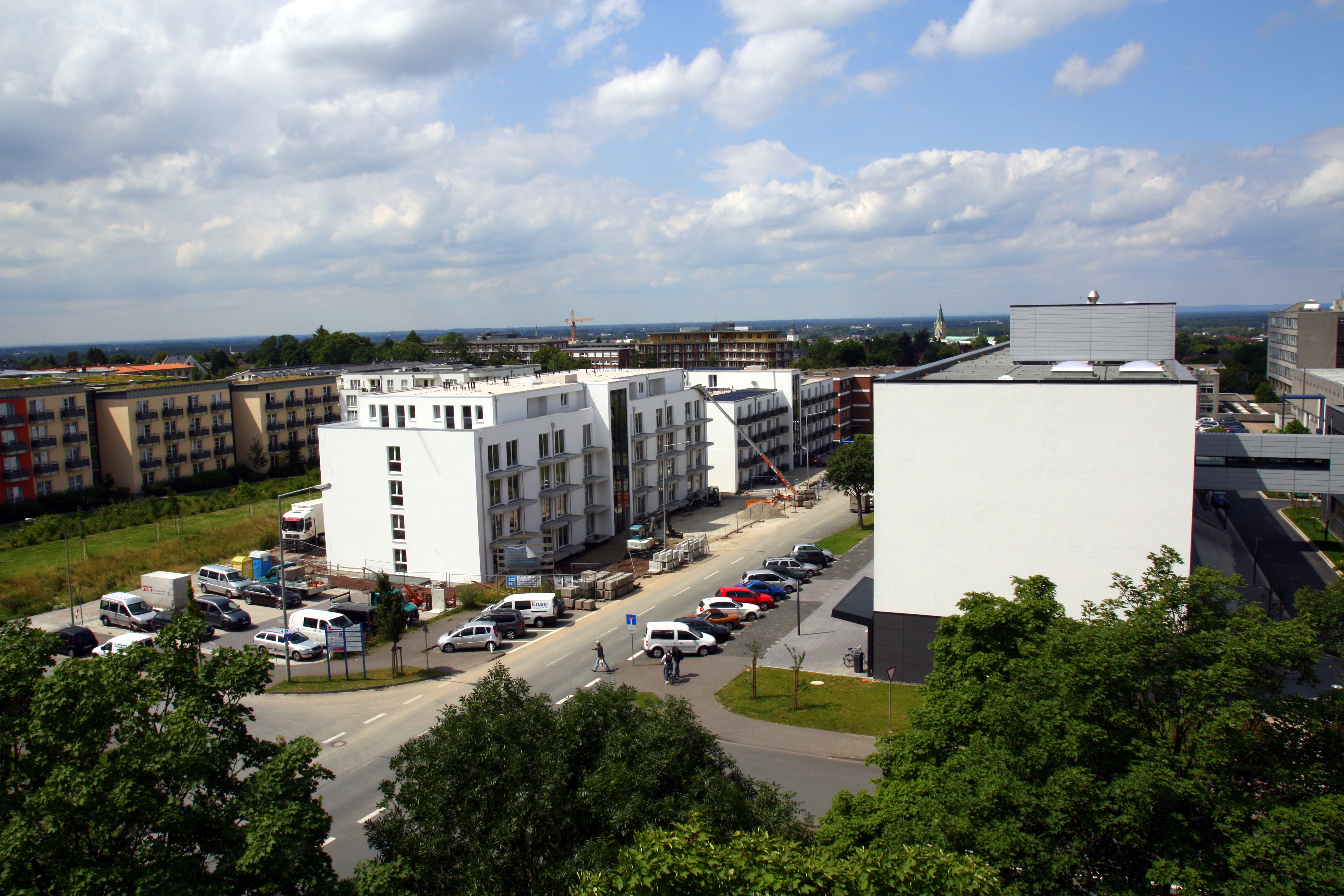 Rechtzeitig zum Beginn des Wintersemesters 2012/13 wird das neueste Studentenwohnheim in Paderborn bezugsfertig sein: Direkt am Universitäts-Campus und benachbart zum erfolgreichen ersten Bauabschnitt geht das neue Wohnheim mit 99 Wohneinheiten unter der Adresse Pohlweg 78 derzeit seiner Fertigstellung entgegen. Nach Angaben von Bauherr Dr. Dieter Brechmann (Hövelhof) ist der Erstbezug der 92 Einzimmer-Apartments und der sieben Zwei-Zimmer-Wohnungen zum 1. Oktober 2012 vorgesehen. In Bau und Einrichtung hat die Brechmann gehörende Campus Apartments GmbH & Co. KG mehr als sieben Millionen Euro investiert.