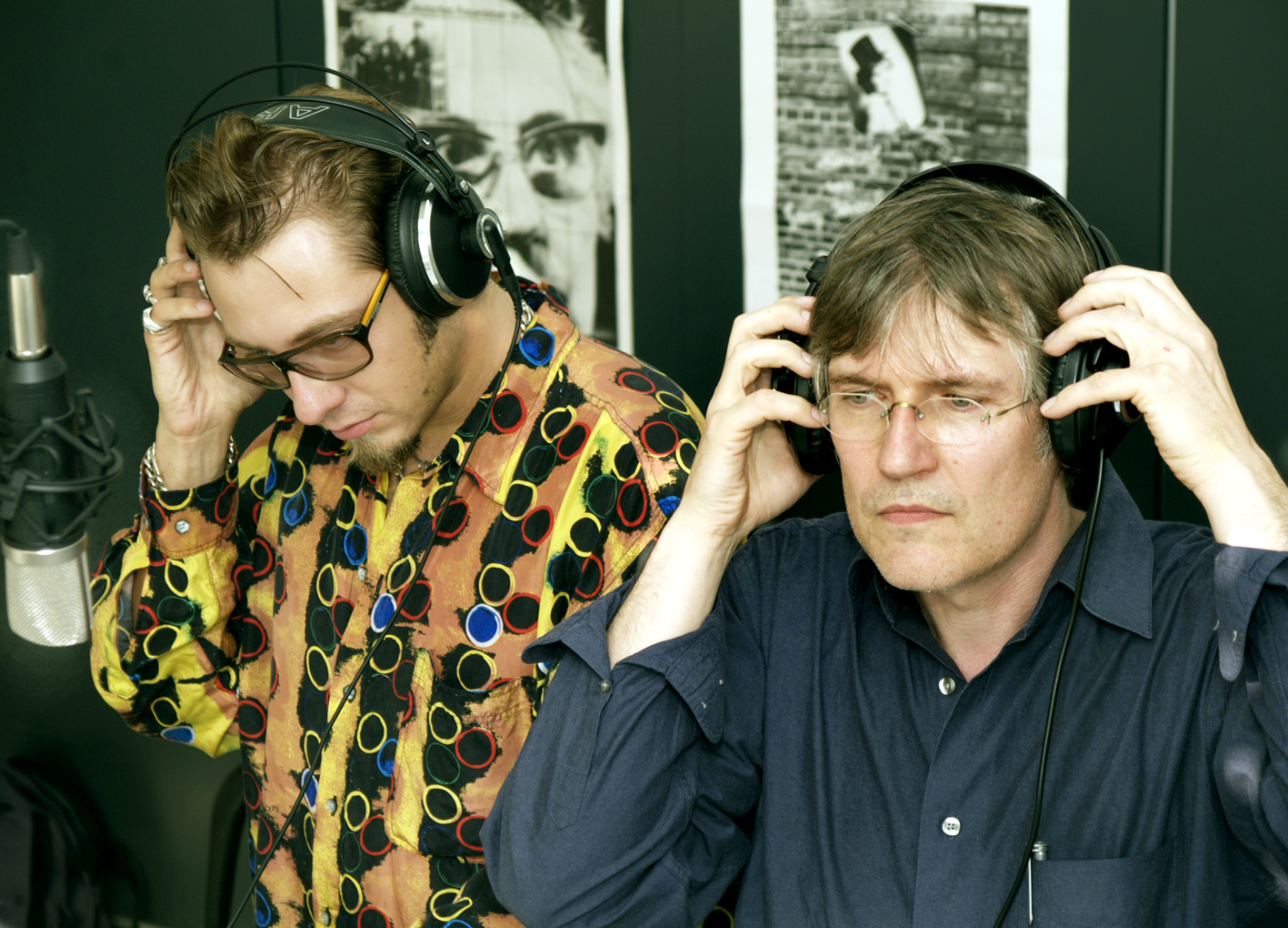 Foto (Adelheid Rutenburges): Moderator Thomas Coucoulis und Dr. Thomas Strauch bei der ersten Live-Sendung des R.A.P.-Projekts der Universität Paderborn.