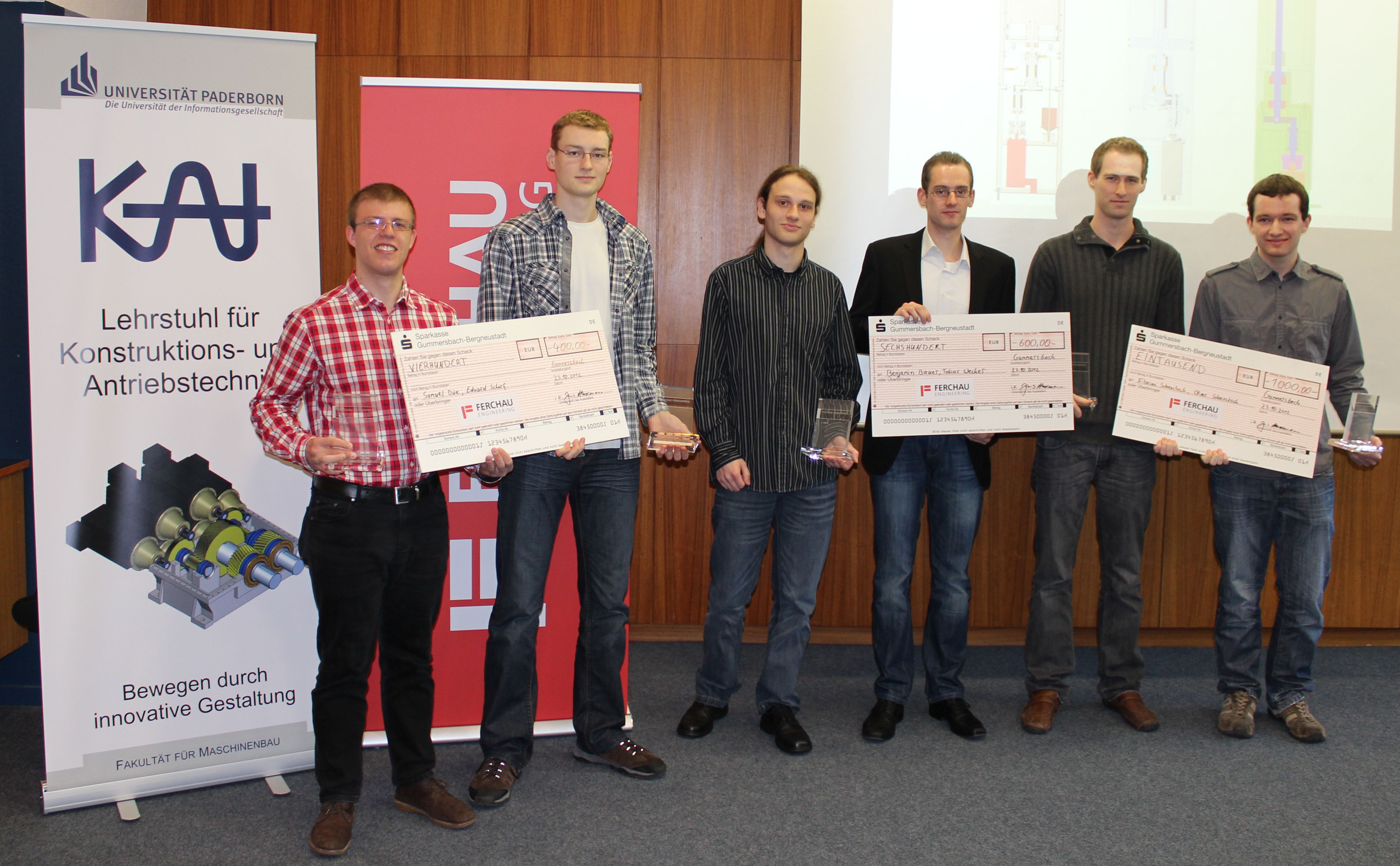Der FERCHAU-Förderpreis für hervorragende Studienleistungen wurde am 23. Oktober zum siebten Mal am Lehrstuhl für Konstruktions- und Antriebstechnik der Fakultät für Maschinenbau der Universität Paderborn vergeben.