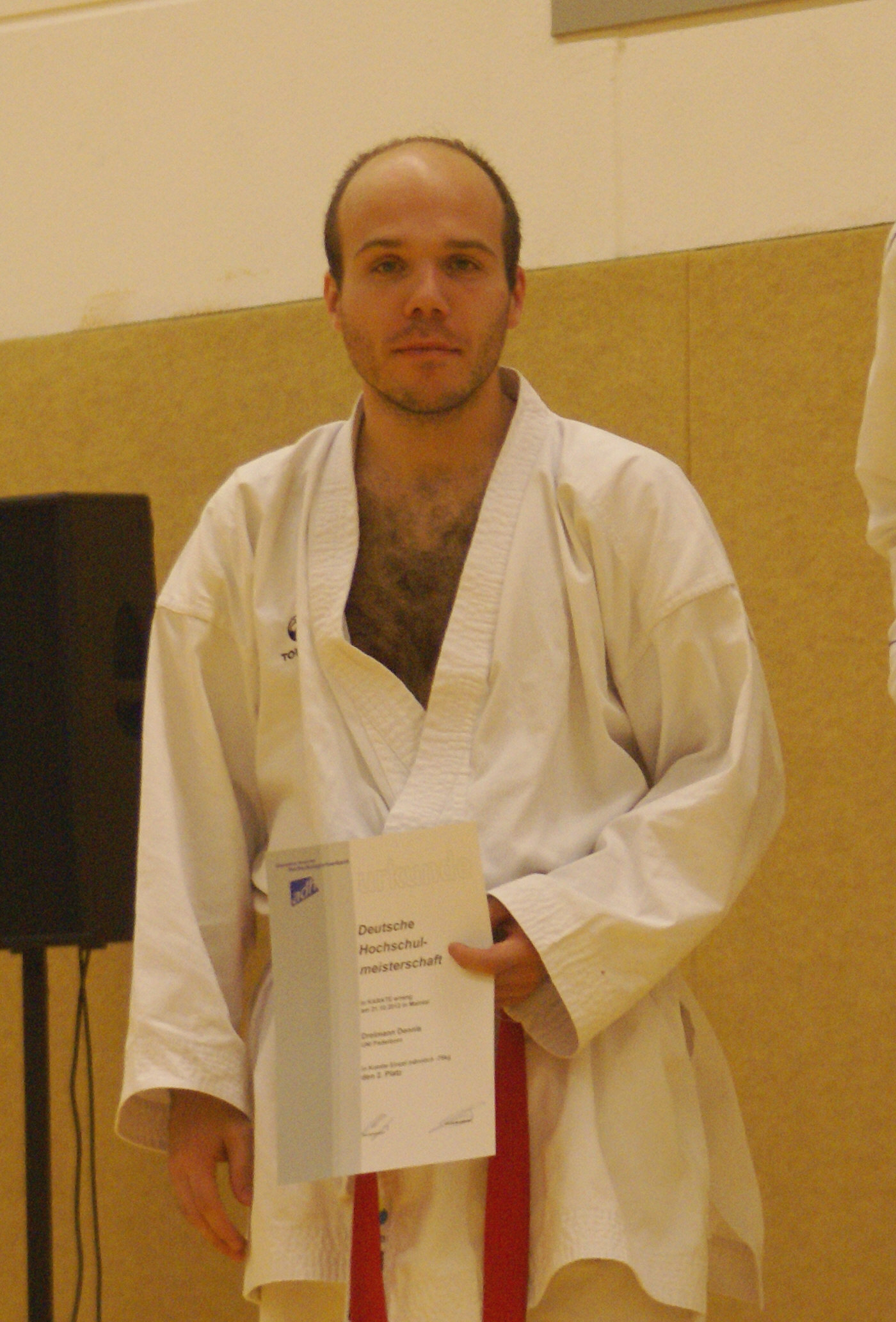 Bei den Deutschen Hochschulmeisterschaften im Karate in Frankfurt konnte das Kumite-Team der Universität Paderborn den dritten Platz belegen. Dennis Dreimann holte im Kumite bis 75 kg Silber und Bernd Nowotzin wurde Dritter im Kata-Wettbwerb.