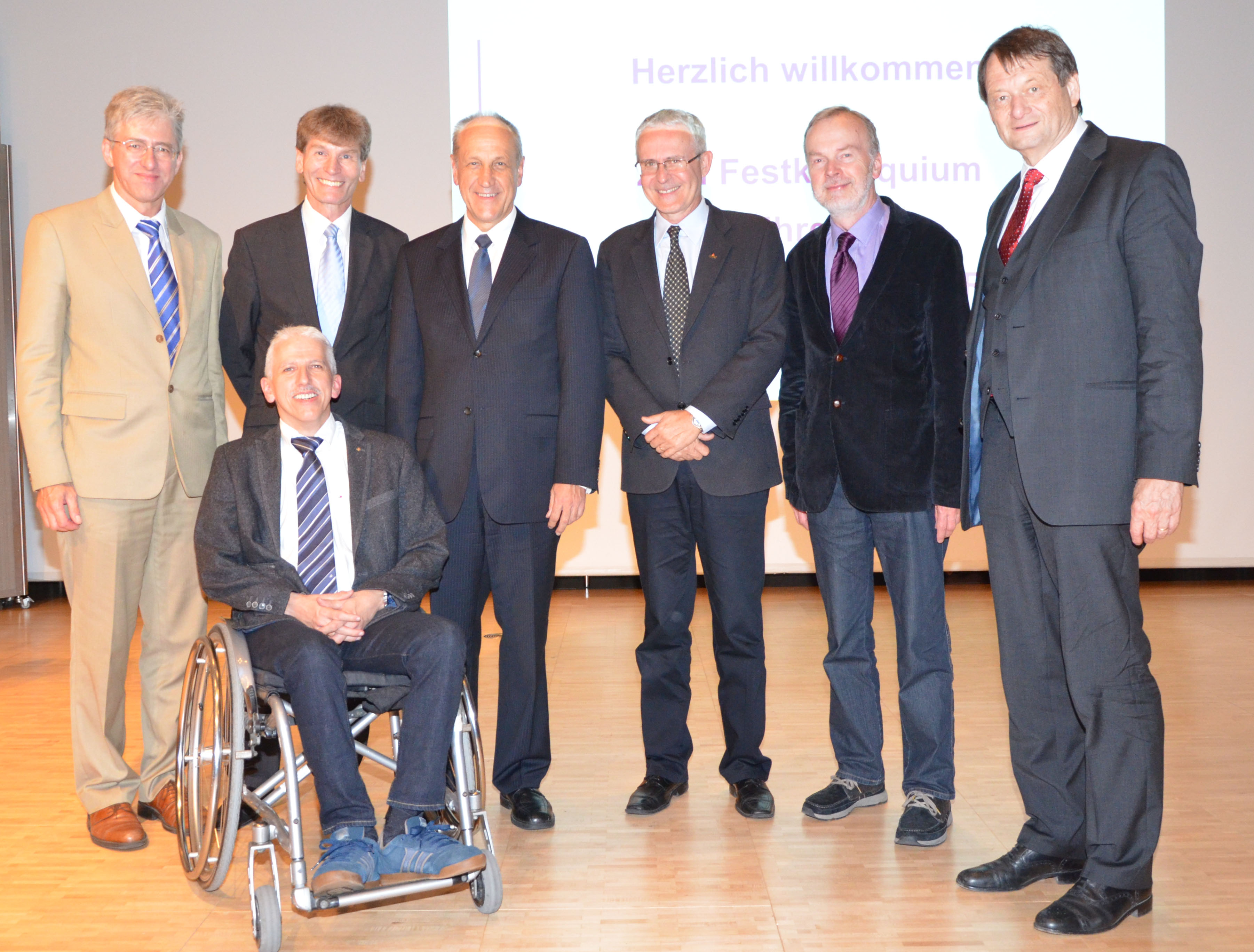 Der Dekan der Fakultät, Prof. Dr.-Ing. Joachim Böcker, begrüßte zahlreiche Gäste aus nah und fern. Der Präsident der Universität Paderborn, Prof. Nikolaus Risch, hob Rammigs Leistungen für die Universität Paderborn hervor; Prof. Otthein Herzog, Jacobs University Bremen und Präsidiumsmitglied der Deutschen Akademie der Technikwissenschaften e. V. (acatech), betonte Professor Rammigs Errungenschaften für die Informatik in Deutschland. Prof. Gerd Szwillus, langjähriger Weggefährte von Franz Rammig, hielt eine sehr unterhaltsame Rede über das gemeinsame Schaffen insbesondere in der Anfangszeit. Juniorprofessor Achim Rettberg, einer der zahlreichen Schüler von Professor Rammig, richtete sehr persönliche Worte an seinen Doktorvater und dankte für die lehrreiche Zeit bei ihm.