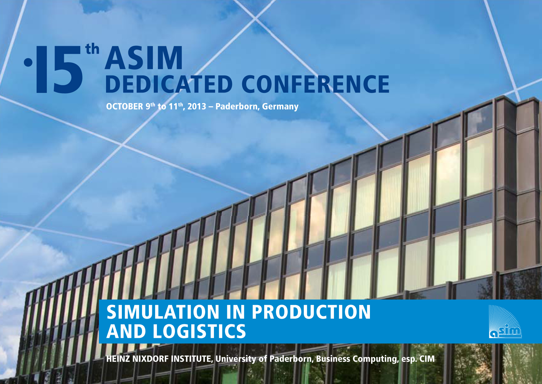 Die 15. ASIM-Fachtagung Simulation in Produktion und Logistik wird vom 9. bis 11. Oktober 2013 vom Heinz Nixdorf Institut der Universität Paderborn ausgerichtet. Veranstaltungsort ist das Heinz Nixdorf MuseumsForum in Paderborn, Fürstenallee 7.