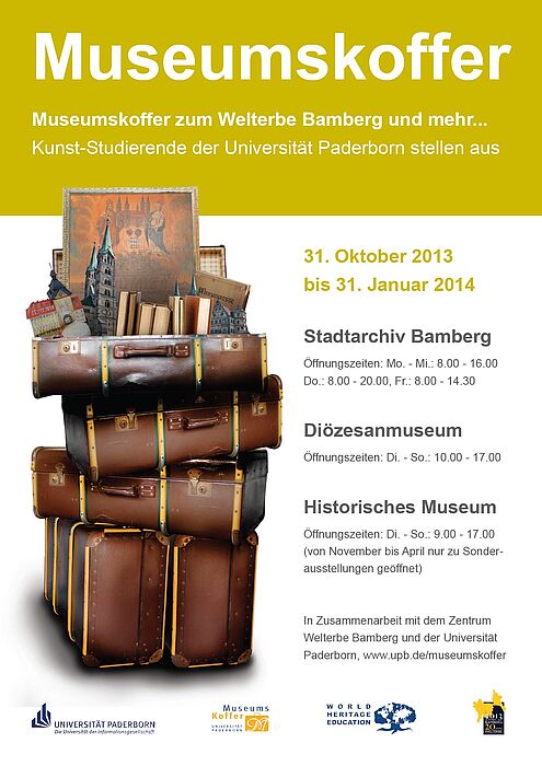 Im Sommersemester 2013 sind an der Universität Paderborn im Fachbereich Kunst unter der Leitung der Kunstpädagogin Lena Westhoff und mit tutorieller Betreuung von der Künstlerin und angehenden Kunstpädagogin Sabrina Zimmermann 19 Museumskoffer entstanden, welche in ungewöhnlicher Weise und in vielfältigen Facetten als „Museen zum Anfassen“ die UNESCO-Welterbestätte Bamberg thematisieren. Vom 31. Oktober 2013 bis zum 31. Januar 2014 sind die Museumskoffer ein Teil einer größeren Ausstellung in Bamberg anlässlich des Welterbetages und des 20-jährigen Aufnahmejubiläums in die UNESCO-Welterbeliste. Dabei werden die Museumskoffer gleichzeitig an drei Ausstellungsorten zu sehen sein: im Diözesanmuseum, im Stadtarchiv Bamberg und im Historischen Museum. Das Museumskofferprojekt zur UNESCO-Welterbestätte Bamberg und die sich daran anschließende Ausstellung ist in enger Kooperation mit Dipl. Ing. Diana Büttner und Oliver Will vom Zentrum Welterbe Bamberg entstanden.