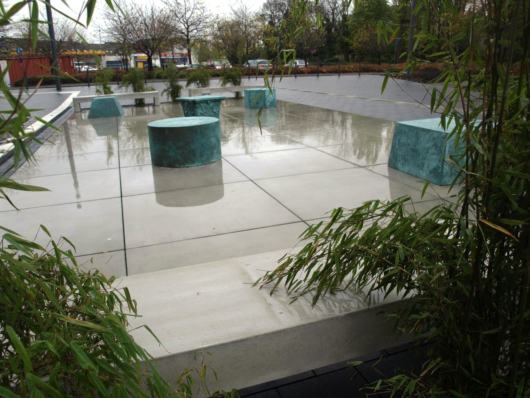 Die Vorlesungszeit hat vor etwa einem Monat begonnen und auch im neuen Gebäude Q der Fakultät für Wirtschaftswissenschaften wird gelehrt und geforscht. Dem doch teils stressigen Unialltag können sowohl Studierende als auch Mitarbeiterinnen und Mitarbeiter der Universität im so genannten „Fakultätengarten“ entfliehen. Der „Fakultätengarten“, ein Kunstwerk des japanischen Künstlers und Bildhauers Yuji Takeoka, befindet sich zentral auf dem Vorplatz des Q-Gebäudes.