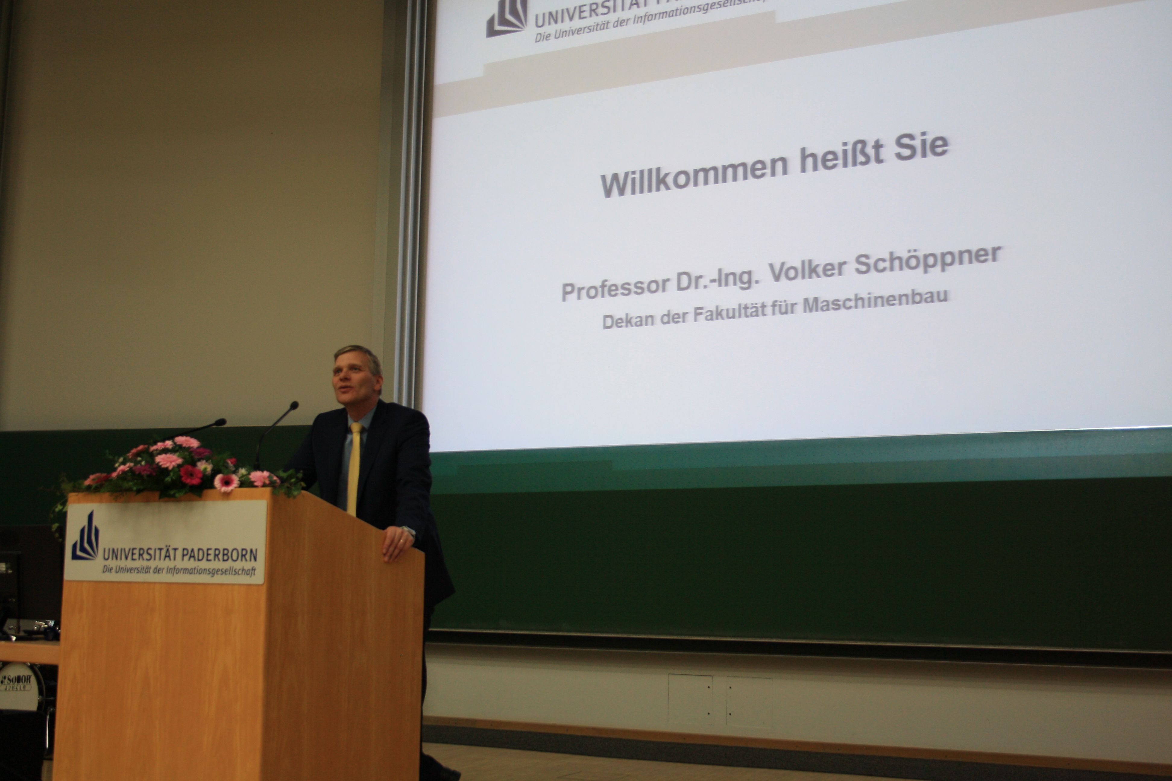 Professor Dr. Wilhelm Schäfer, Vizepräsident für Forschung und wissenschaftlichen Nachwuchs der Universität Paderborn, überbrachte die Glückwünsche des Präsidiums und bedankte sich ebenfalls bei den Eltern, die die Weichen für die Studienwahl gestellt haben. „Sie können stolz auf Ihre Kinder sein, die auch zum Erfolg der forschungsstarken Fakultät für Maschinenbau beigetragen haben. Besonders durch die Master- und Diplomarbeiten und die Promotionen entsteht für die Absolventen und die Fakultät eine Win-Win-Situation.“