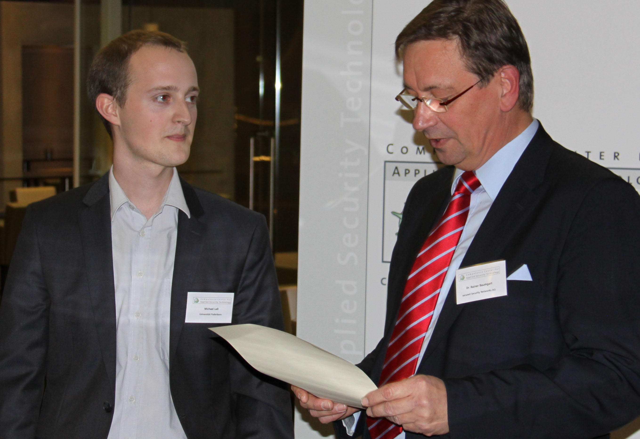 Das „Competence Center for Applied Security Technology“ (CAST e. V.) hat in diesem Jahr wieder den „Förderpreis IT-Sicherheit“ an Autoren herausragender Abschluss- und Studienarbeiten auf dem Gebiet der IT-Sicherheit verliehen. Den ersten Preis erhielt der Informatikstudent Michael Laß für seine Bachelorarbeit bei Jun.-Prof. Christoph Sorge in der Fachgruppe „Sicherheit in Netzwerken“. Die Arbeit ist eine Fortführung der Masterarbeit von Dominik Leibenger, die im vergangenen Jahr mit dem Univention-Absolventenpreis ausgezeichnet wurde. Herr Leibenger hat die Bachelorarbeit von Herrn Laß mit betreut.