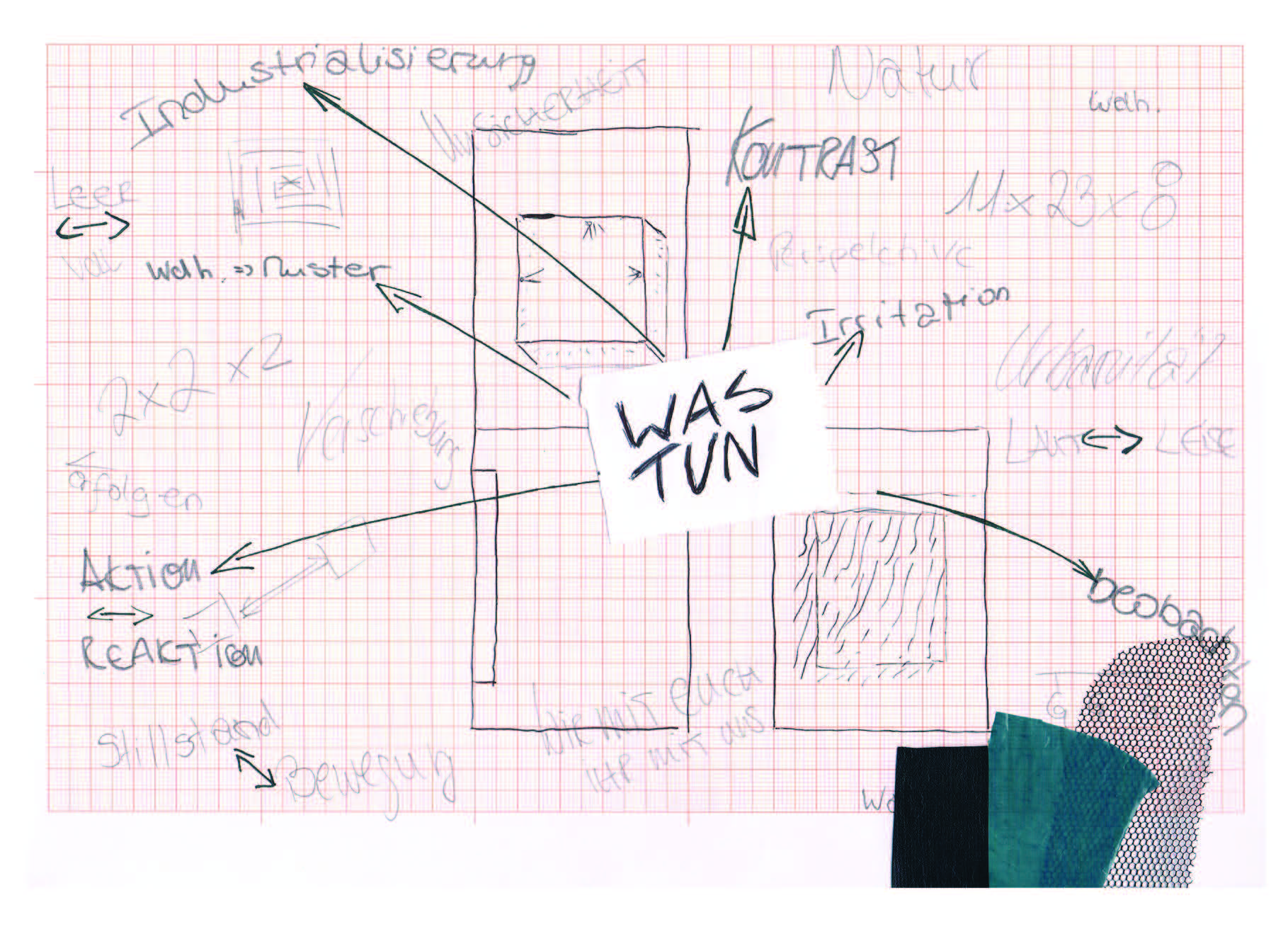 Basierend auf einem ausgeschriebenen Wettbewerb des Künstlers Carsten Schade (weil ich es kann), entstand ihr Ausstellungskonzept. Durch Raum- und Videoinstallationen versuchen die zwei Studentinnen, eine Antwort auf die oben angesprochene Fragestellung zu finden. Dabei wird offen gelassen, ob und wie die Besucher mit den Arbeiten umgehen. Von „Was tun?“ bis „Was tun!“ ist alles möglich – getreu dem Motto „Alles kann, nichts muss.“