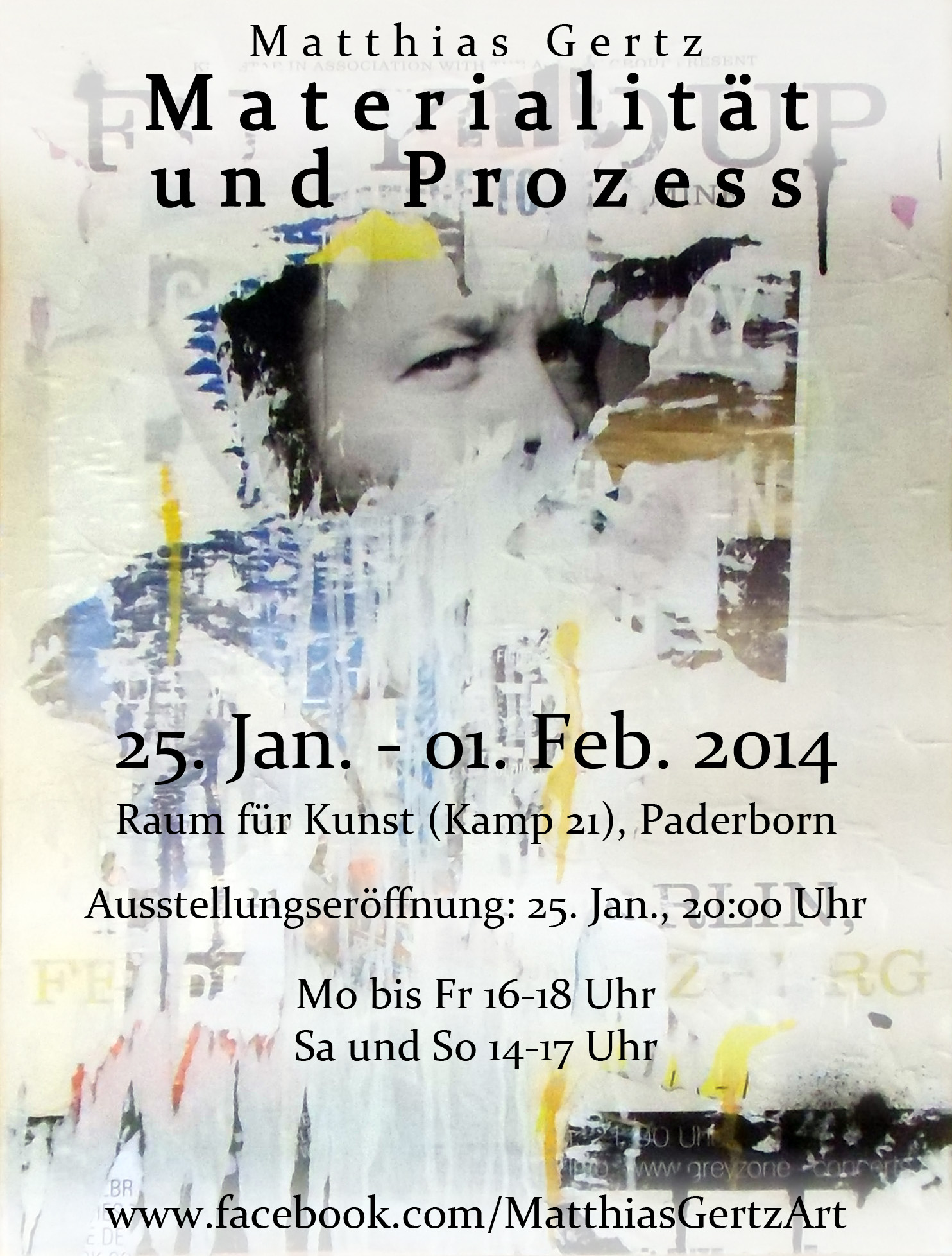 Rippografien nennt Student Matthias Gertz seine großformatigen Collagen und Decollagen aus Plakatabrissen, die vom 25. Januar bis 1. Februar 2014 im "Raum für Kunst" in Paderborn zu sehen sind. Die ungewöhnlichen Bilder bestechen durch ihre Ästhetik von verwitterten, übereinander klebenden und zerrissenen Plakaten. Ausgewählte Details werden mit Zeichnungen und Farben hervorgehoben. Dadurch verbinden sich die unterschiedlichen Schichten miteinander. In der so entstehenden Rippografie werden sie komprimiert und in einen neuen Kontext gesetzt.
