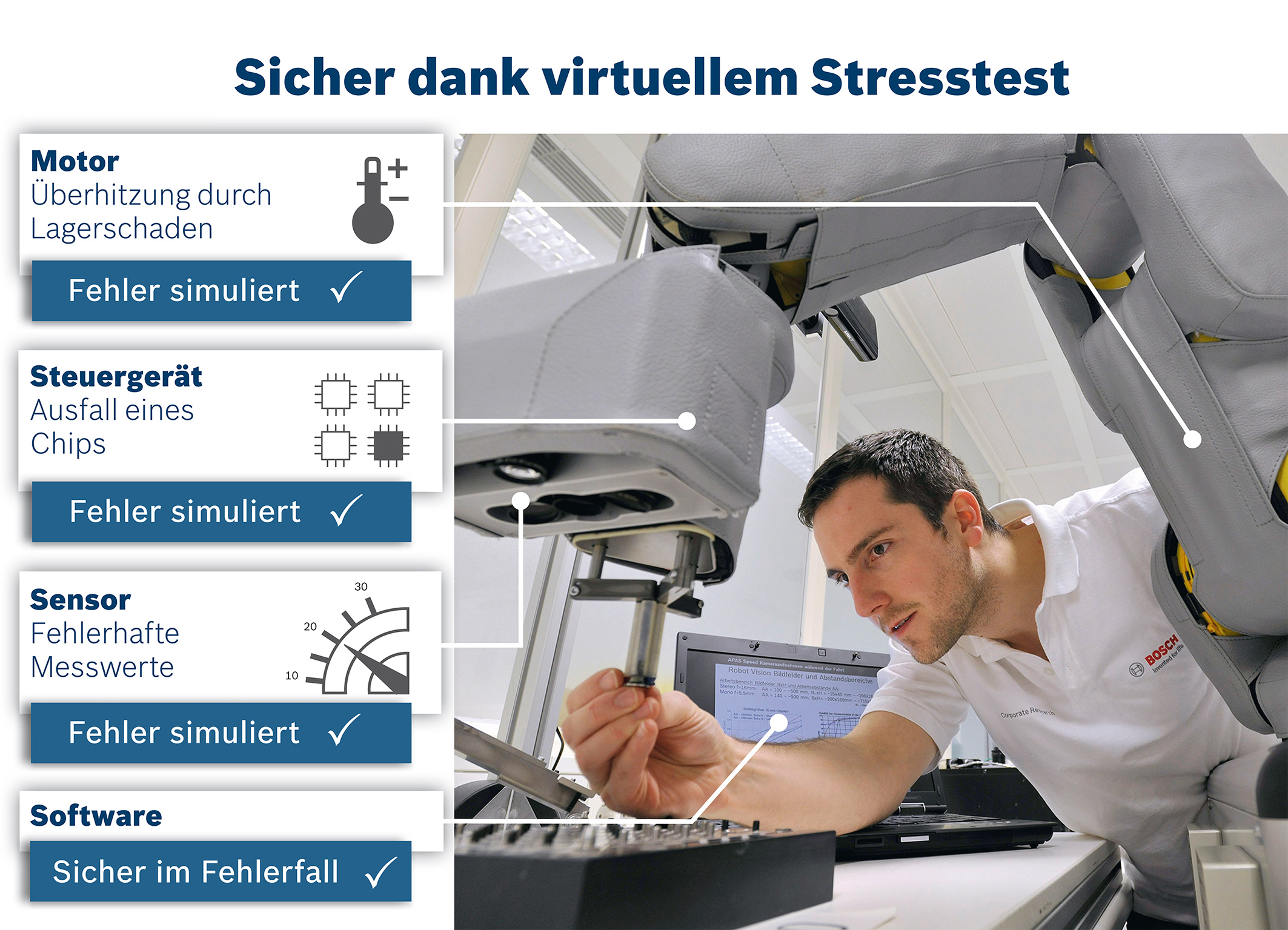 Abbildung: Sicher dank virtuellem Stresstest. Stresstest für Roboter: Partner aus Industrie und Forschung entwickeln Prüfmethode für komplexe Industriesysteme (Nachdruck für redaktionelle Zwecke honorarfrei mit Vermerk „Foto: Bosch”).