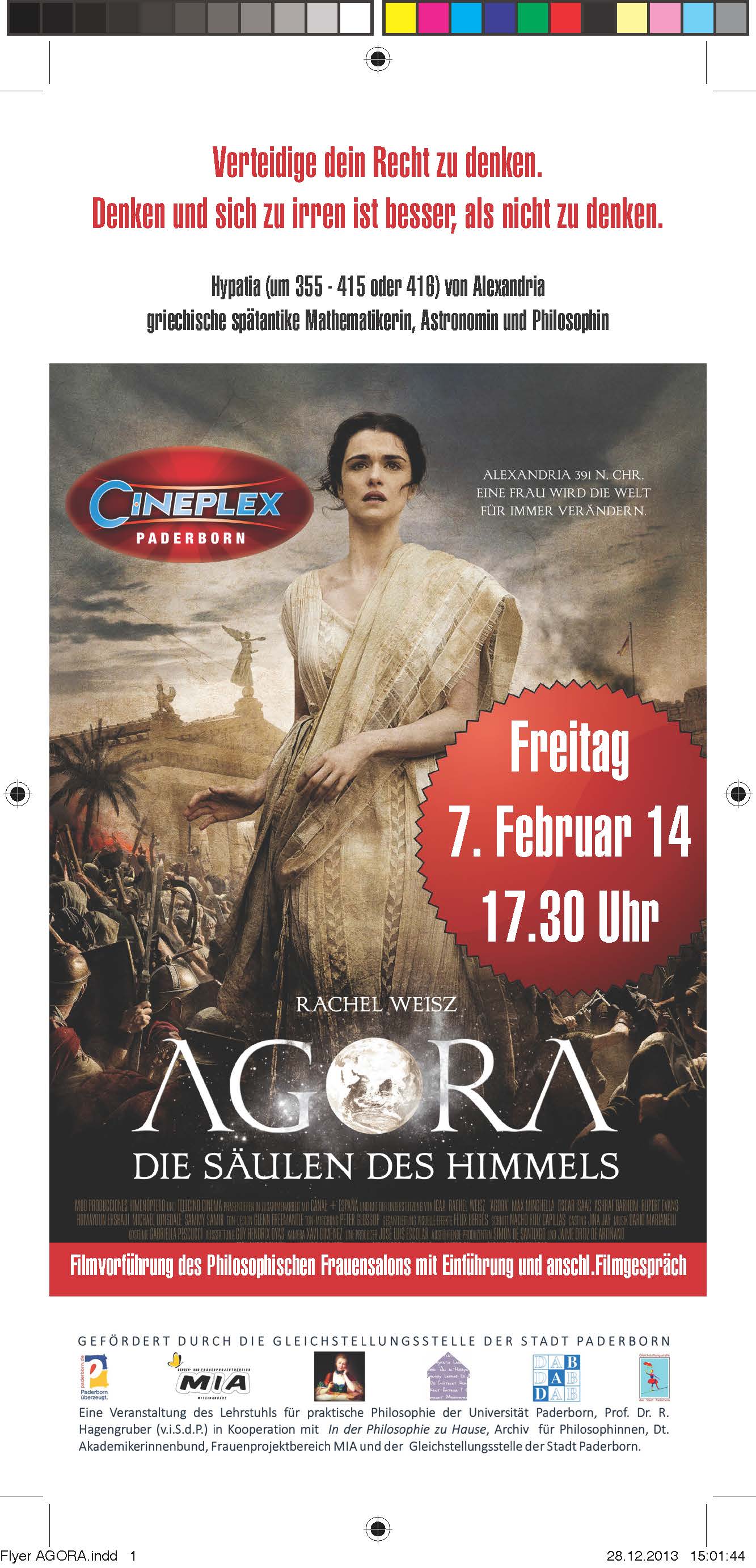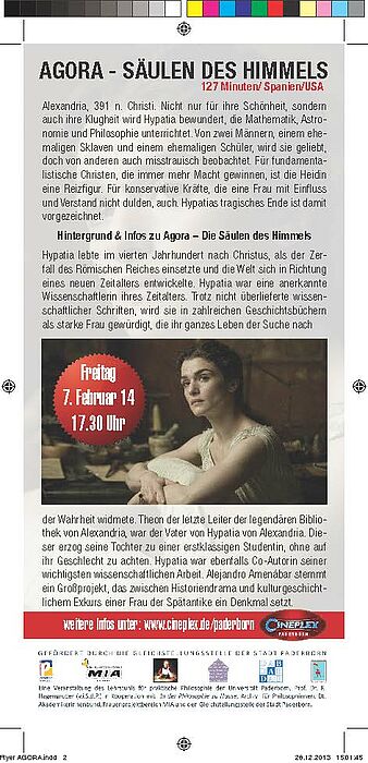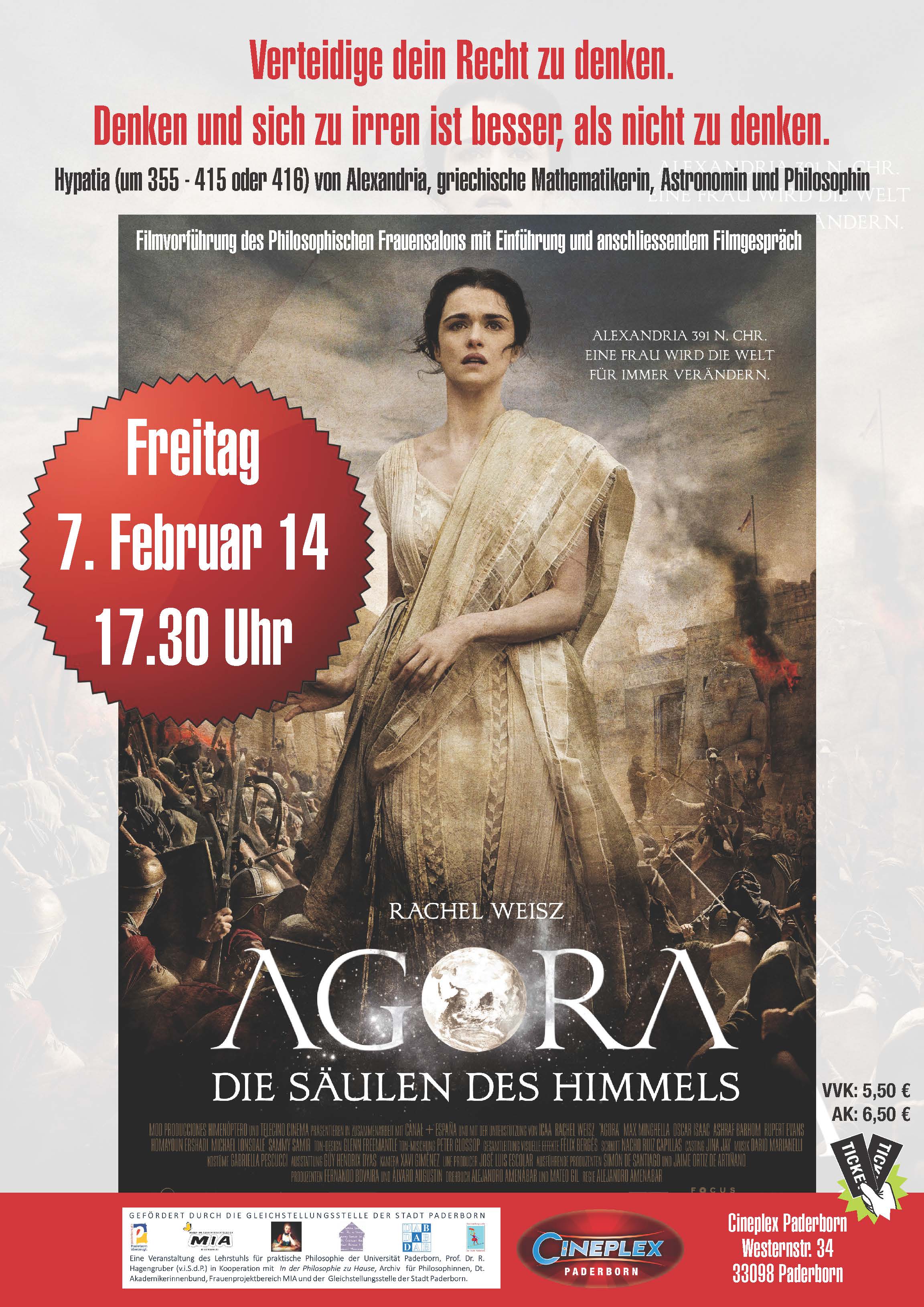 Am Freitag, 7. Februar, präsentiert der philosophische Frauensalon in Kooperation mit dem CINEPLEX Paderborn Alejandro Amenábars „AGORA – Die Säulen des Himmels“.