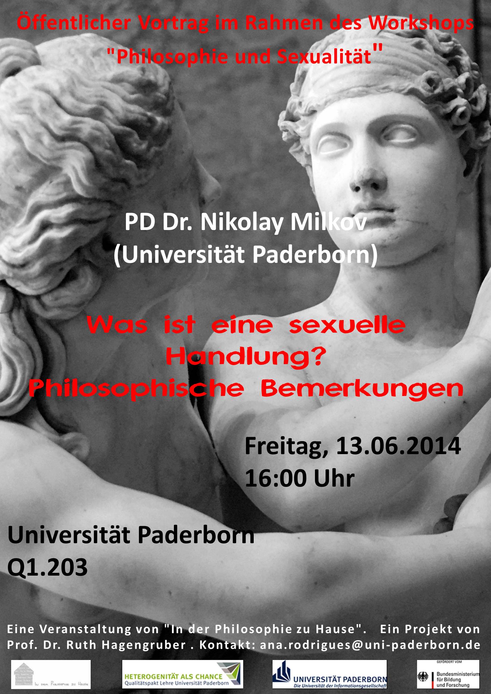 Der Workshop findet seinen Abschluss in einem öffentlichen Vortrag am Freitag, dem 13.06.14, um 16 Uhr im Raum Q1.203: PD Dr. Nikolay Milkov, "Was ist eine sexuelle Handlung? Philosophische Bemerkungen". Alle Interessierten sind dazu herzlich eingeladen.