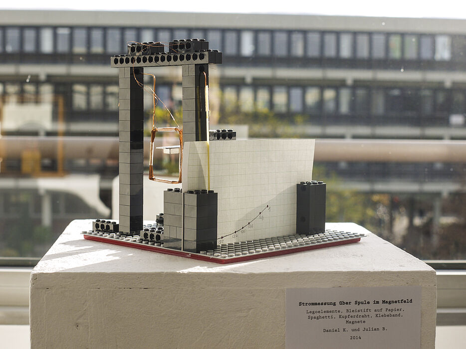 Die Studierenden bauten die ausgestellten Objekte im Rahmen des Physik Praktikums 3P: In jeweils drei Stunden planten und realisierten sie mit zur Verfügung gestellten Materialien ein funktionsfähiges Strommessgerät, mit dem sie im nächsten Schritt Messungen vornahmen.