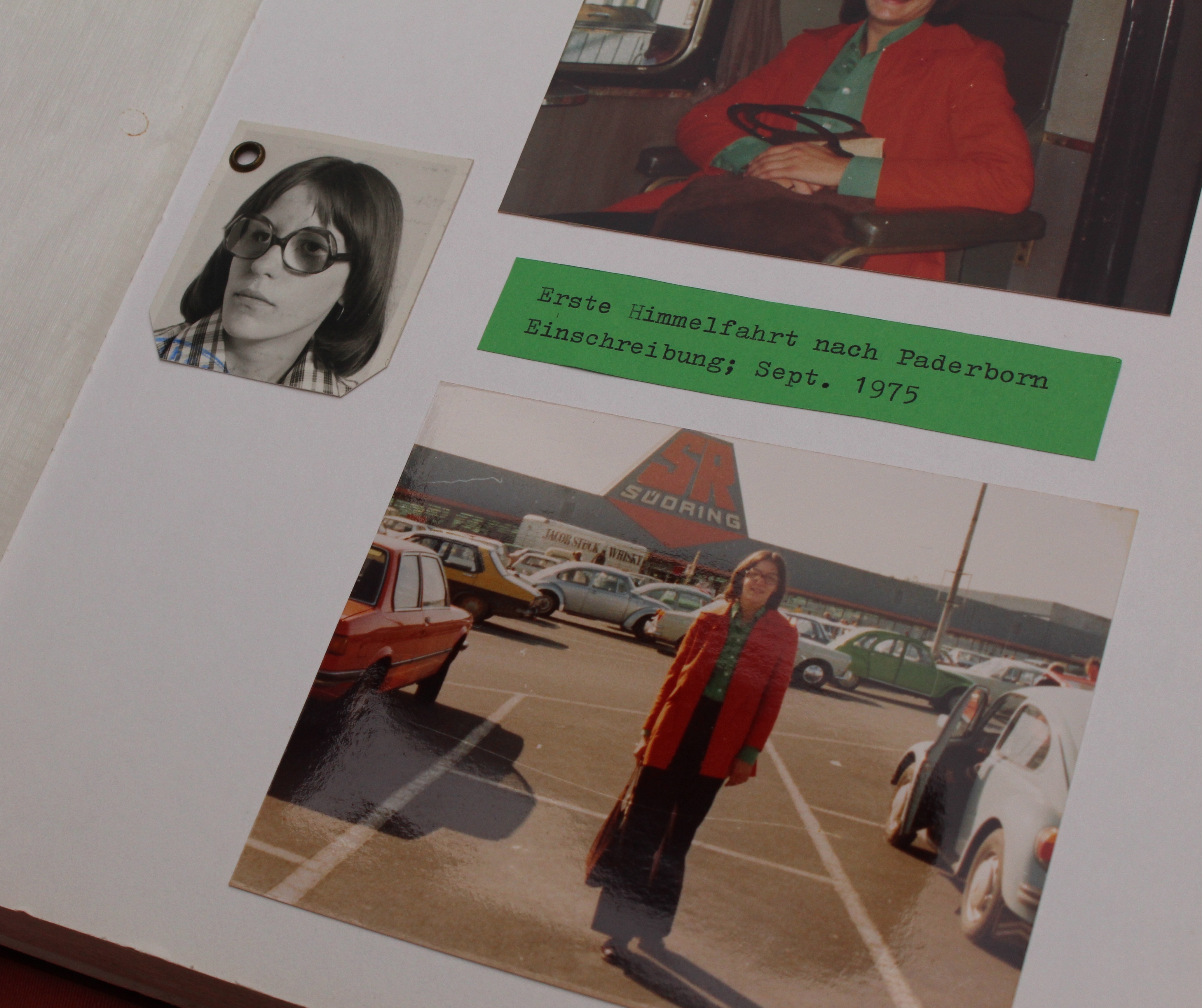 Foto (Universität Paderborn, Alexandra Dickhoff): Eine andere Seite im Fotoalbum bebildert den Tag der Einschreibung im Wintersemester 1975.