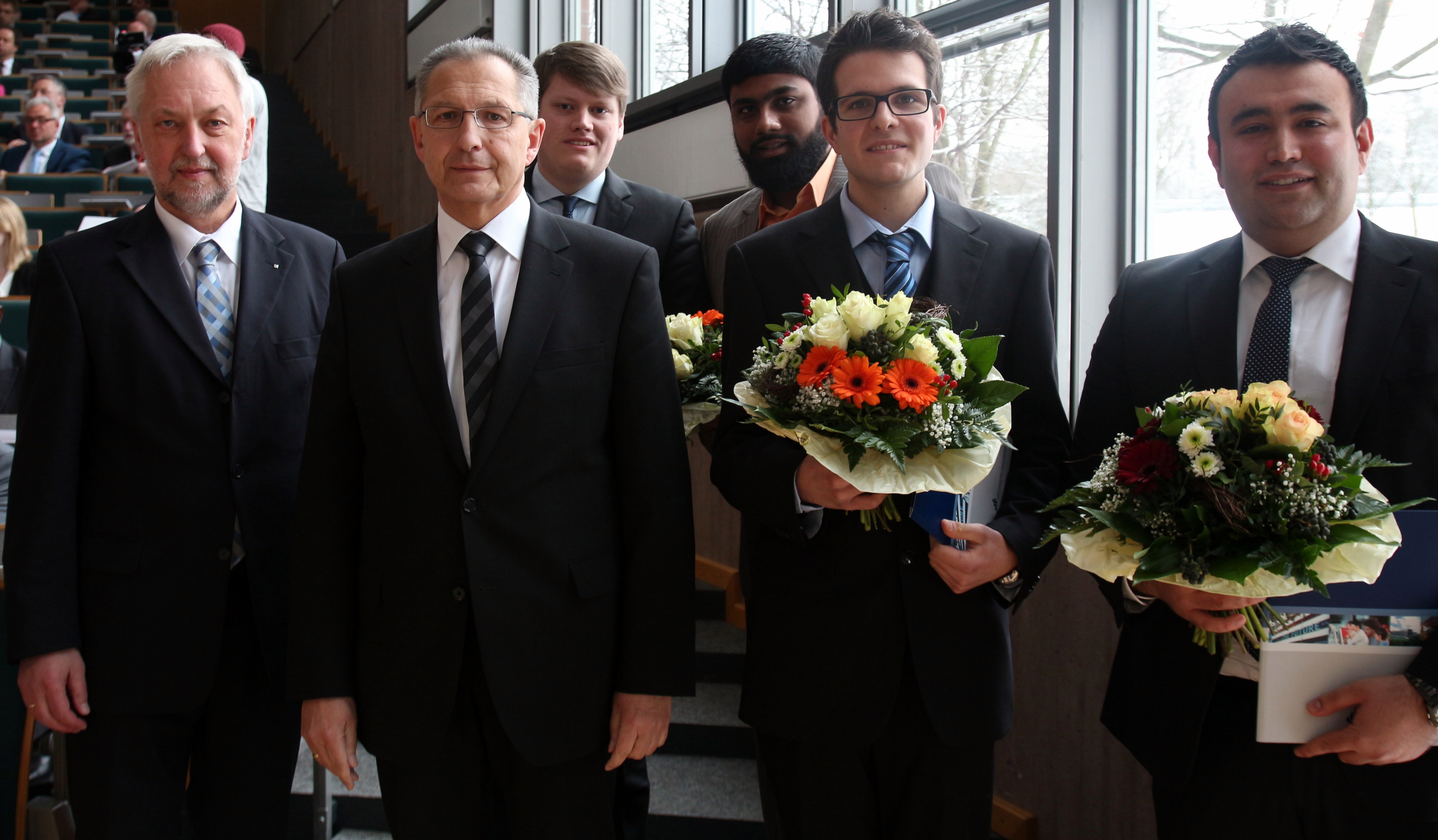 Überreicht von Präsident Prof. Dr. Wilhelm Schäfer und Bernhard Dorenkamp (Universitätsgesellschaft), gingen die Preise für ausländische Studierende an Azharuddin Kazi und Mehmet Esat Aydinöz.