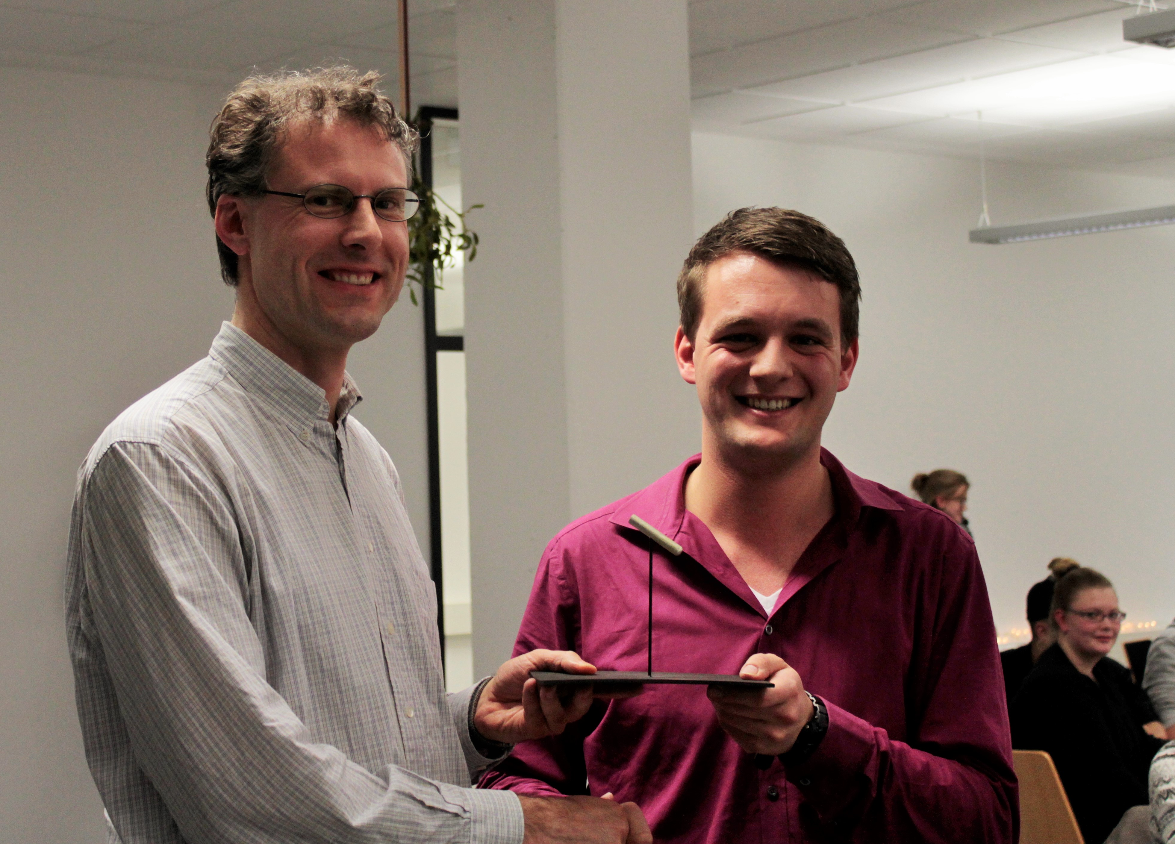 Carsten Müller, der stellvertretend für den Vorstand der Fachschaft die Veranstaltung moderierte, sagte bei der Preisverleihung: „Herr Prof. Schindlmayr geht in seiner Vorlesung zur Festkörpertheorie gut auf die Belange der Studierenden ein. Gerade im 6. Fachsemester wird die zeitliche Belastung der Studierenden aufgrund der zeitgleich stattfindenden Bachelorarbeiten als sehr hoch empfunden. Anstatt umfangreiche Hausarbeiten zu verlangen, nimmt Herr Schindlmayr hierauf Rücksicht durch eine sehr effiziente Nutzung der Präsenzzeiten, insbesondere auch in den Übungen, die er selbst leitet. Dennoch findet er Zeit für umfangreiche und präzise Erklärungen in angemessenem Tempo. Für diese Leistung und sein Engagement bekommt Herr Schindlmayr auf Basis der Daten aus der Veranstaltungskritik für das Jahr 2015 vom Fachschaftsrat Physik die „Goldene Kreide“ überreicht.“ Der Preisträger freute sich: „Für mich ist die Lehre ein zentraler und wichtiger Bestandteil meiner Tätigkeit. Ich freue mich ganz besonders über diese Auszeichnung und darüber, dass sie von den Studierenden selbst kommt.“