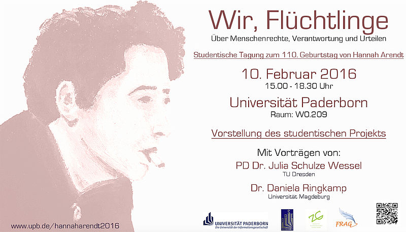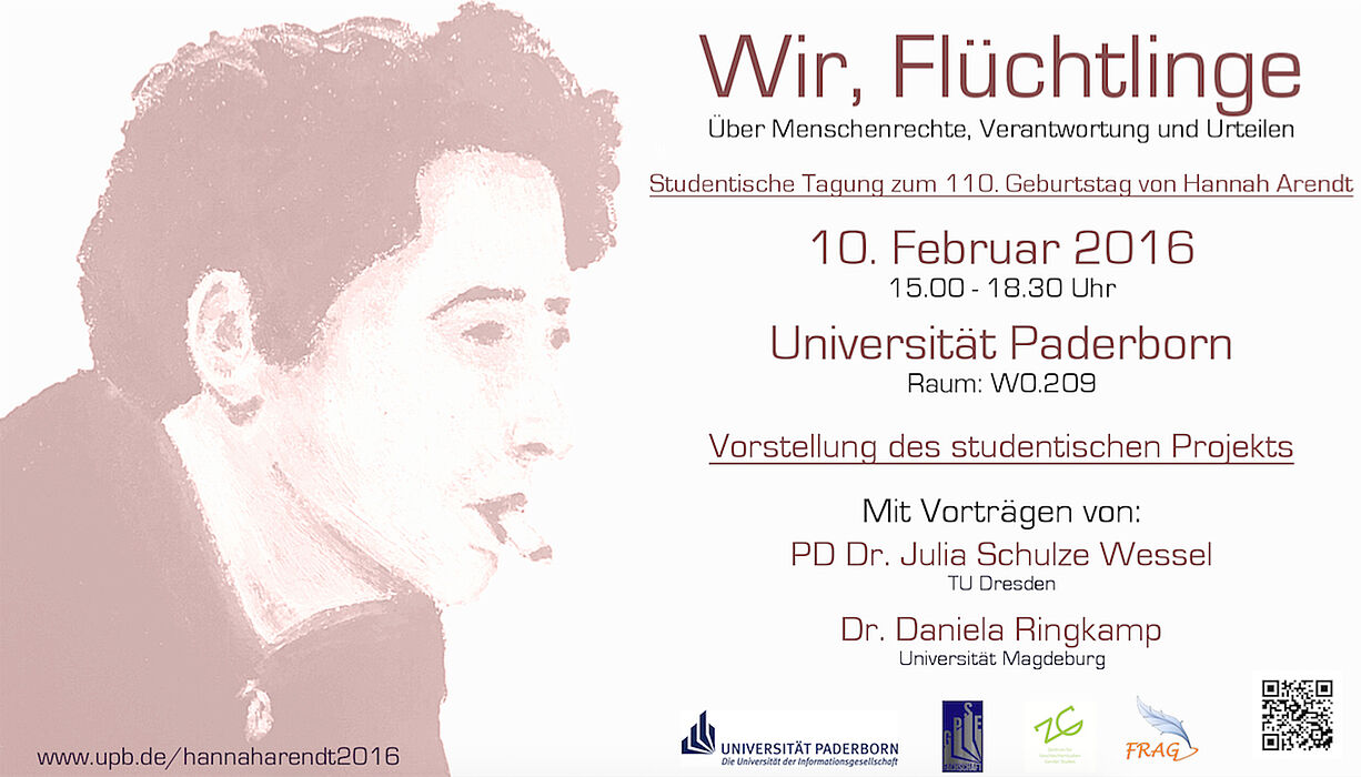 Anlässlich des bevorstehenden 110. Geburtstags Hannah Arendts hatte ein Team von Studierenden der Philosophie am 10. Februar zu einer studentischen Tagung in die Universität Paderborn eingeladen. Unter der Leitung von Dr. Maria Robaszkiewicz organisierten sie im Rahmen des Seminars „Freiheit und Politik: Die aktuellen Debatten um Hannah Arendts Begriff des Politischen“ die Veranstaltung rund um die Themenschwerpunkte der Philosophie Hannah Arendts, mit dem besonderen Augenmerk gerichtet auf die Aspekte der aktuellen Flüchtlingssituation. In diesem Kontext wurden verschiedene Facetten ihrer politischen Philosophie, wie die Kritik der Wirksamkeit der Menschenrechte, die Unterscheidung zwischen politischer und persönlicher Verantwortung sowie die Notwendigkeit des qualifizierten politischen Urteilens in der heutigen Welt lebhaft diskutiert.