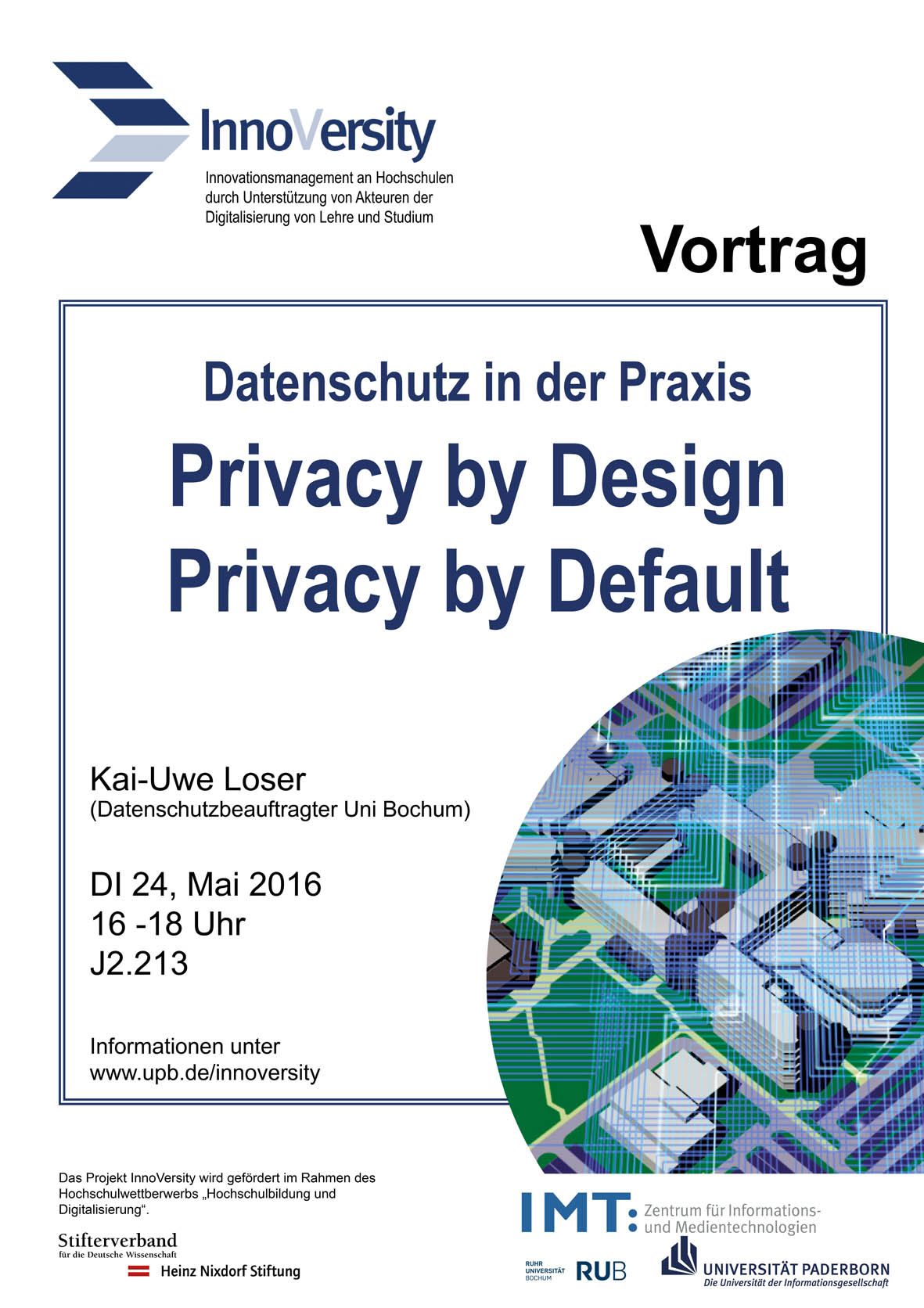 Aufgrund kommender EU-Datenschutzregeln müssen für Systemarchitekturen zukünftig bestimmte technische Optionen durchdacht werden, die als datenschutzfreundlich einzustufen sind. Dr. Kai-Uwe Loser, Datenschutzbeauftragter der Ruhr-Universität Bochum, widmet sich am 24. Mai dem Thema „Privacy by Design und Privacy by Default“ und stellt sich der Frage, wie die neuen Richtlinien praktisch umgesetzt werden können. Welche technischen Optionen sind bereits als Privacy Enhancing Technologies etabliert? Über welche Optionen wird zurzeit noch diskutiert?