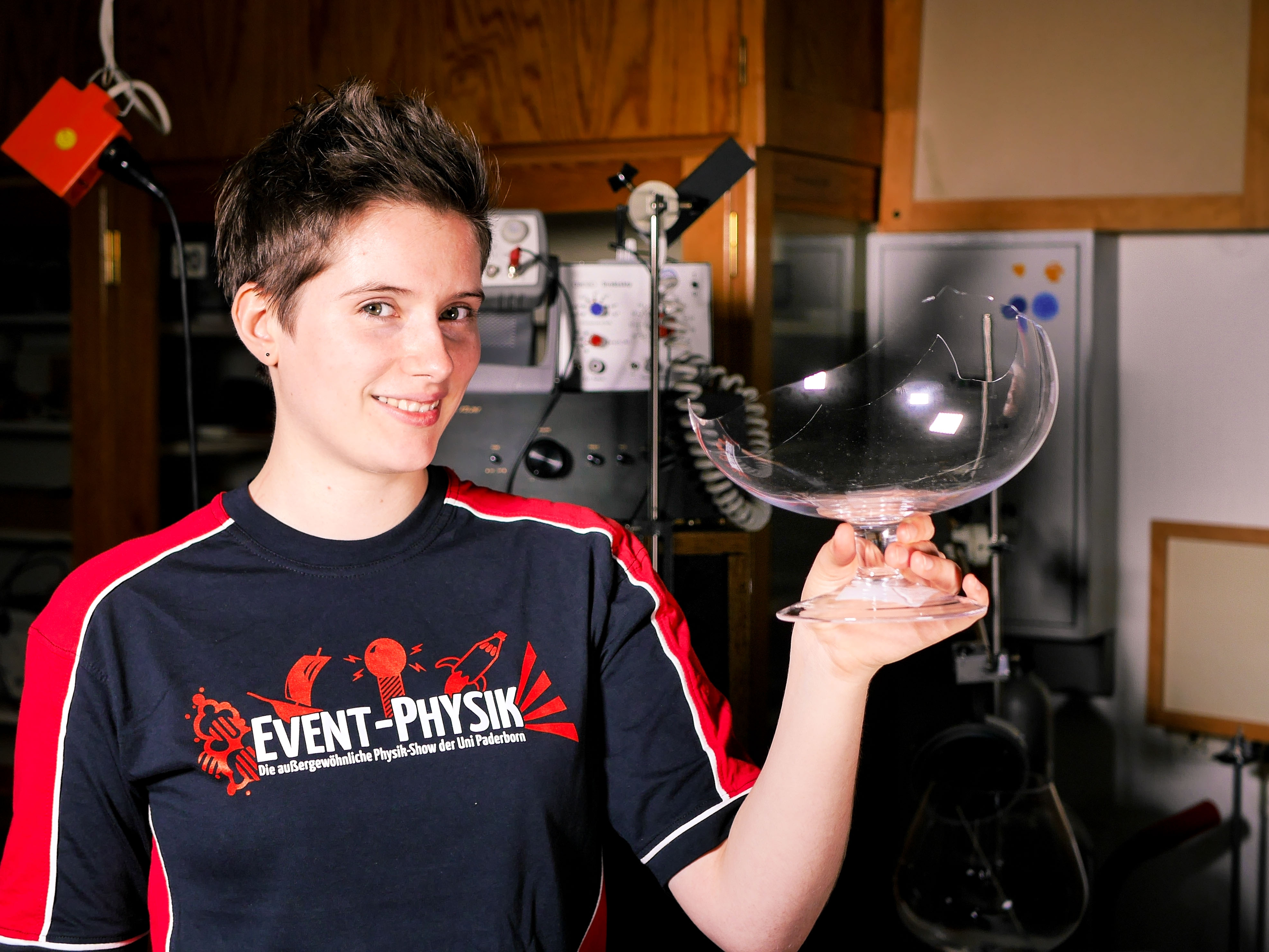 Foto (Universität Paderborn, Johannes Pauly): Hat Studentin Sophia Thies tatsächlich ein Glas zersungen?