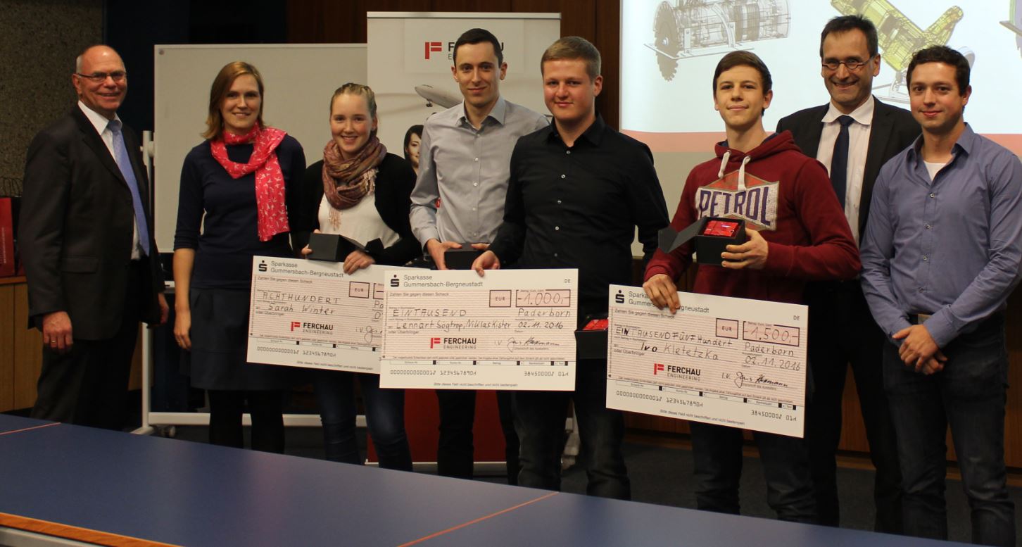Am 8. November wurde der FERCHAU-Förderpreis, mittlerweile zum 11. Mal, in enger Zusammenarbeit mit dem Lehrstuhl Konstruktions- und Antriebstechnik der Universität Paderborn vergeben. Der Preis richtet sich an Studierende der Fachrichtungen Maschinenbau, Wirtschaftsingenieurswesen und Ingenieurinformatik Maschinenbau, die im vierten Semester des Grundstudiums stehen.